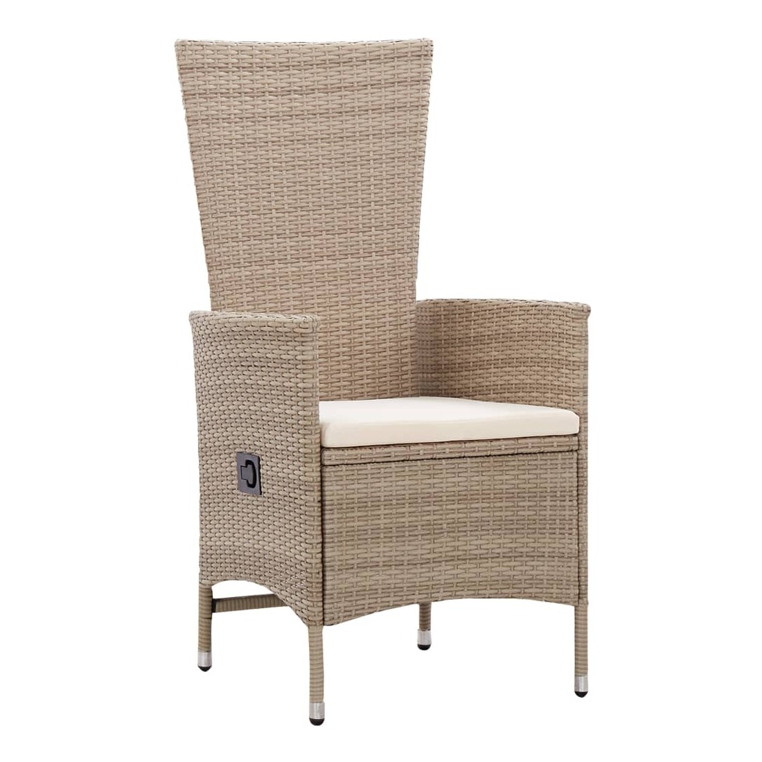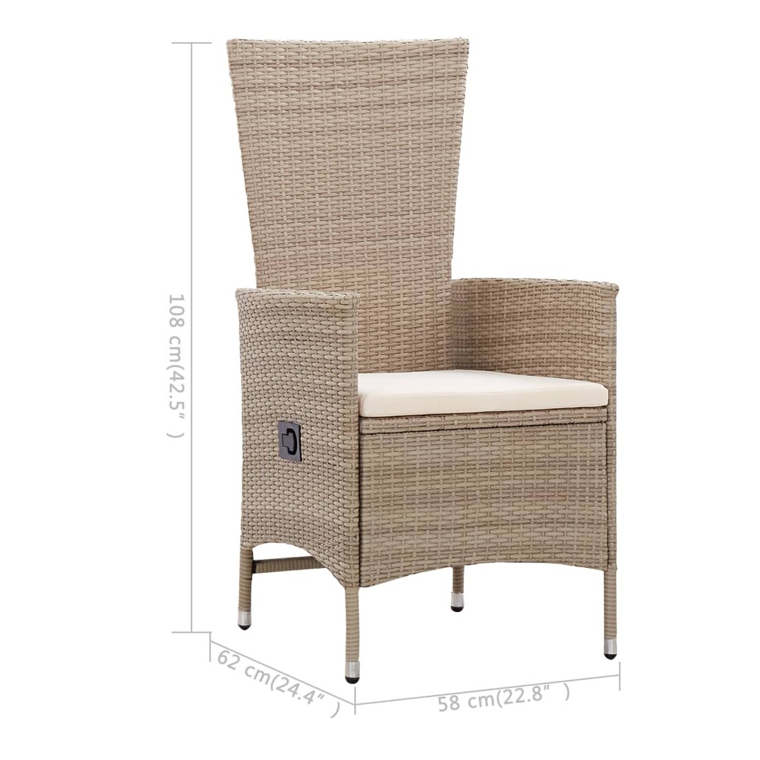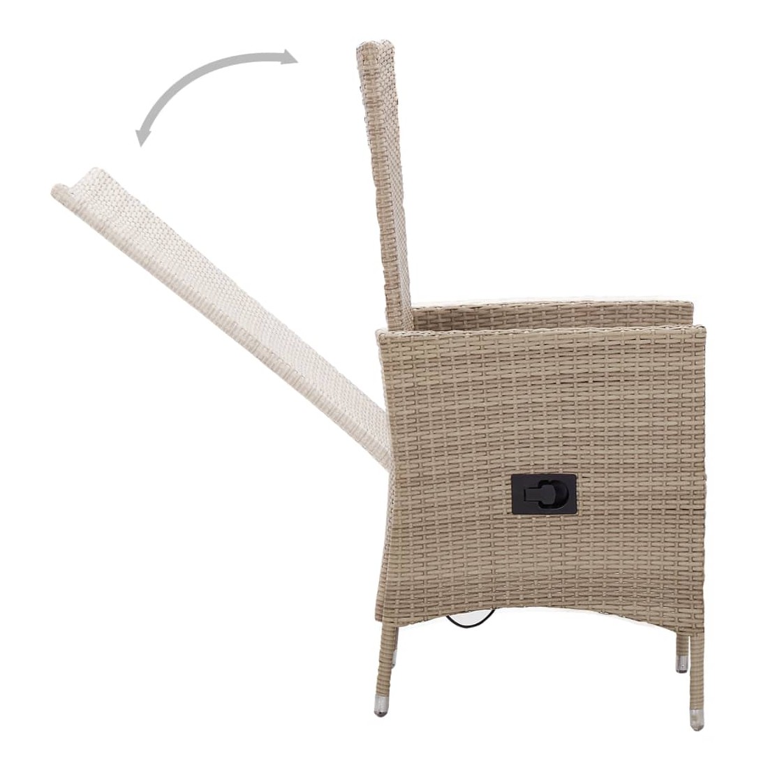 Créez une esthétique convaincante et uniforme dans votre espace extérieur avec cet ensemble de salle à manger de jardin ! La table de salle à manger est fabriquée en bois d’acacia massif avec une finition à l’huile, ce qui la rend stable, durable et facile à entretenir. Dotées d’un cadre en acier enduit de poudre recouvert de résine tressée résistante aux intempéries, ces chaises de salle à manger sont robustes et faciles à nettoyer. Les chaises inclinables vous offrent tout le confort nécessaire. Le dossier s’inclinera en tirant sur le bouton situé au côté. Grâce à leur construction légère, elles sont faciles à déplacer. Elles sont également livrées avec des coussins d'assise hautement confortables et bien rembourrés pour un confort suprême. Les housses en polyester nécessitant peu d'