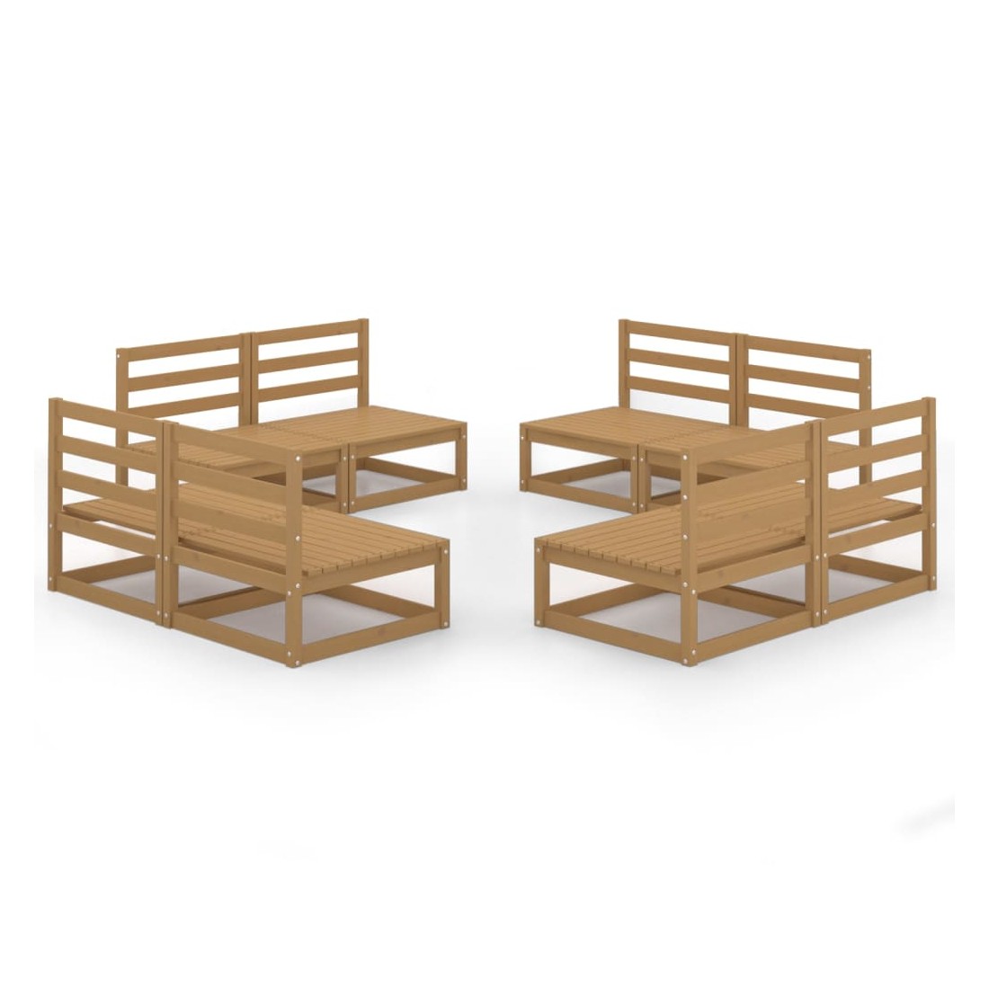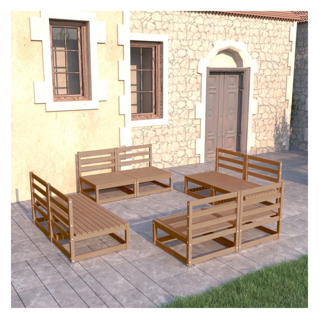 Salon de jardin 8 pcs marron miel bois de pin massif