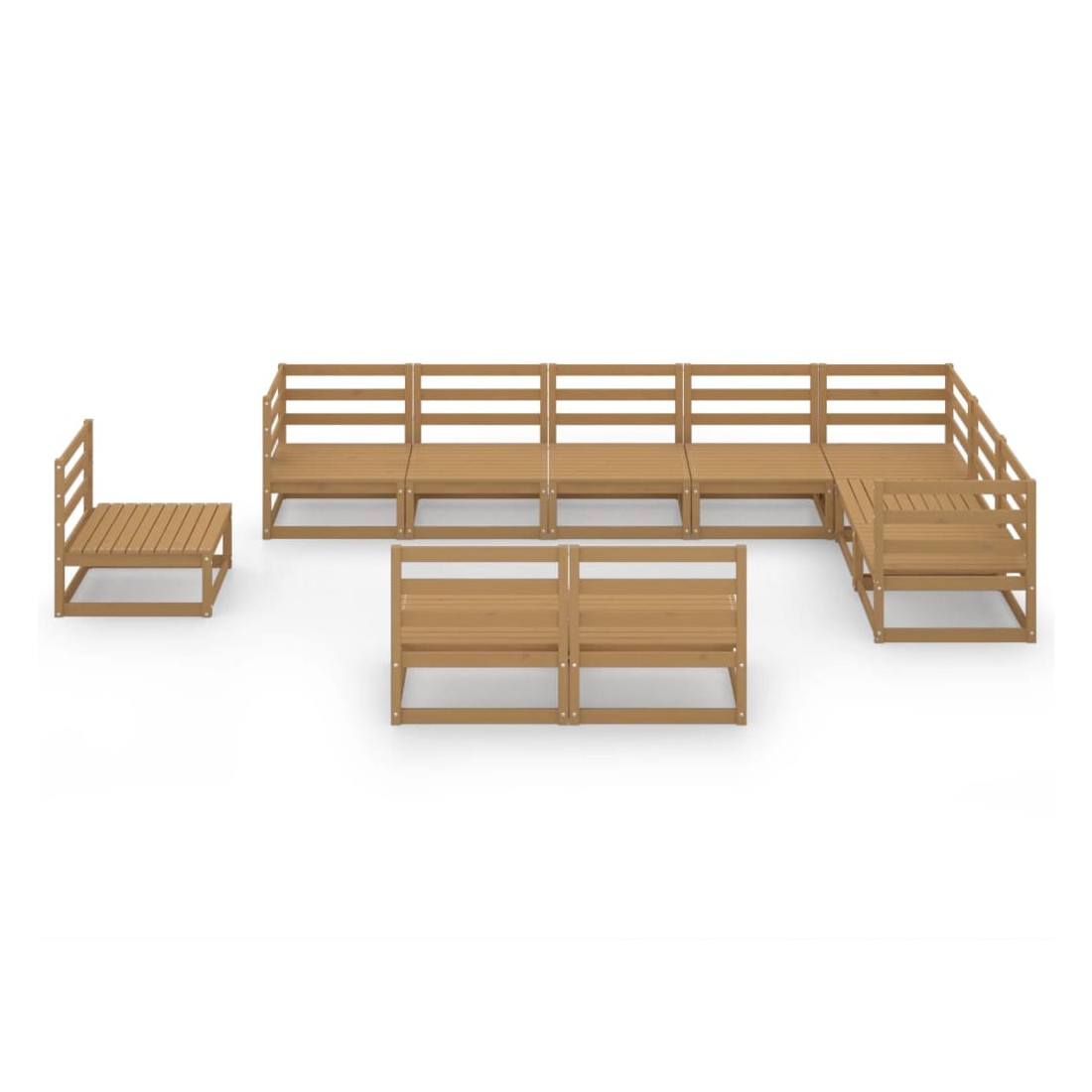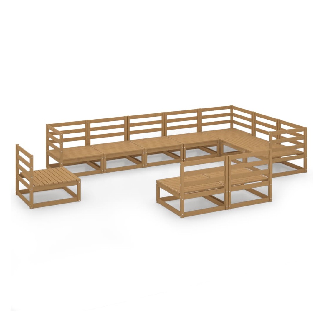 Salon de jardin 10 pcs marron miel bois de pin massif