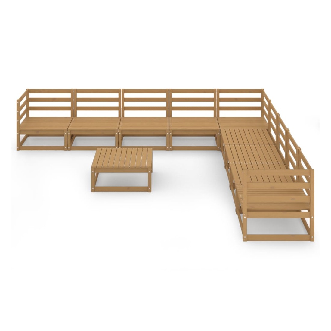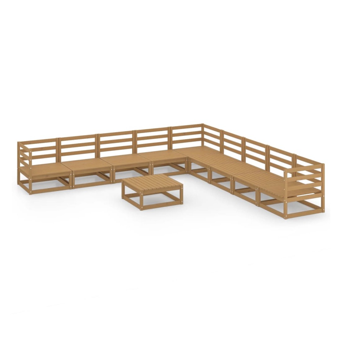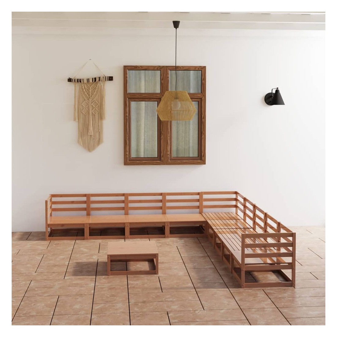 Salon de jardin 10 pcs marron miel bois de pin massif