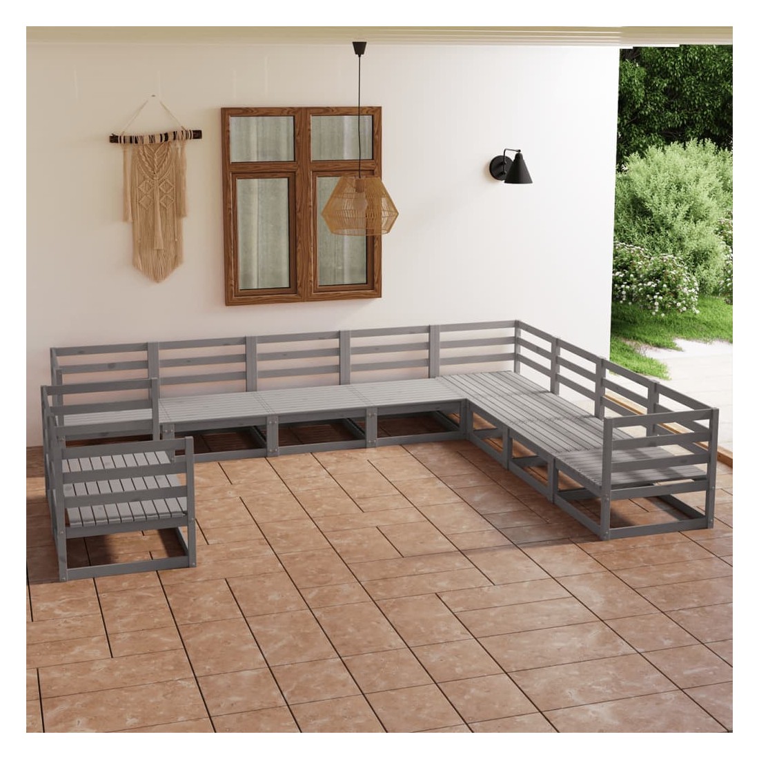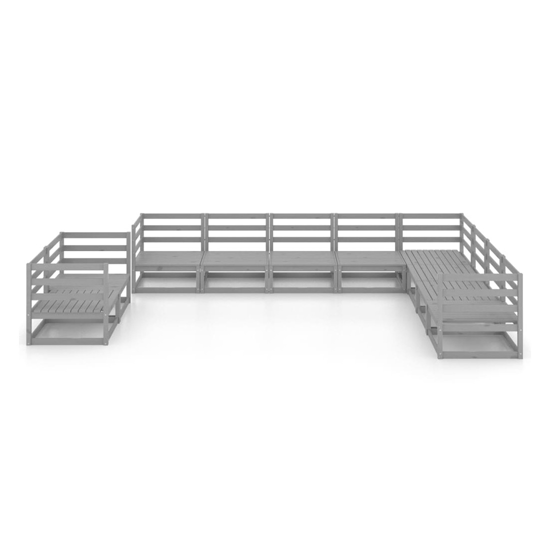 Salon de jardin 10 pcs gris bois de pin massif