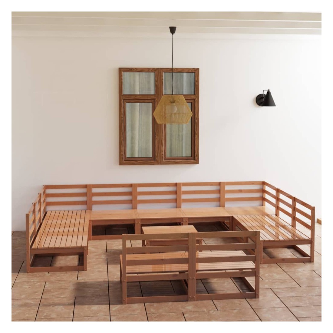 Salon de jardin 12 pcs bois de pin massif