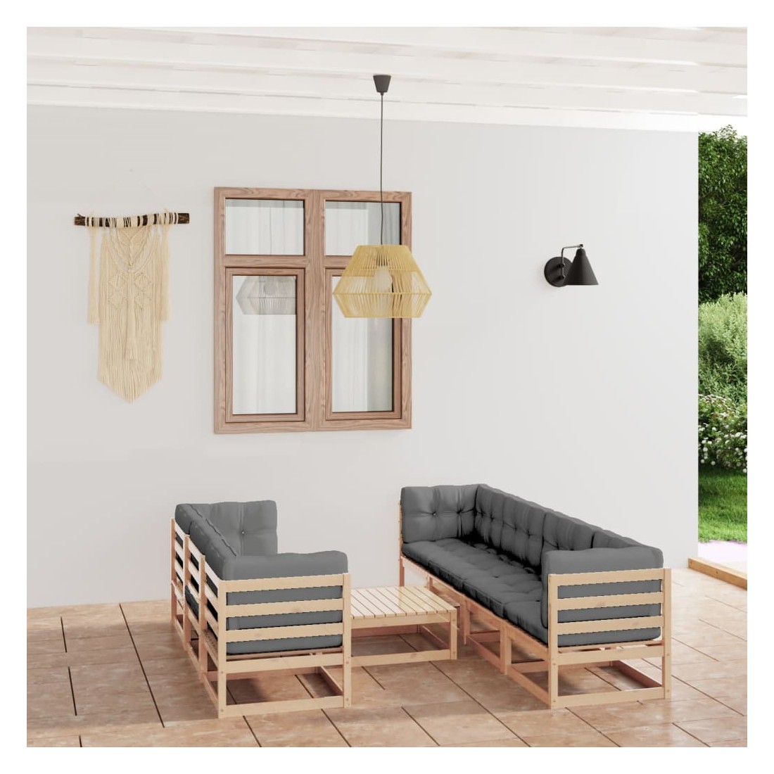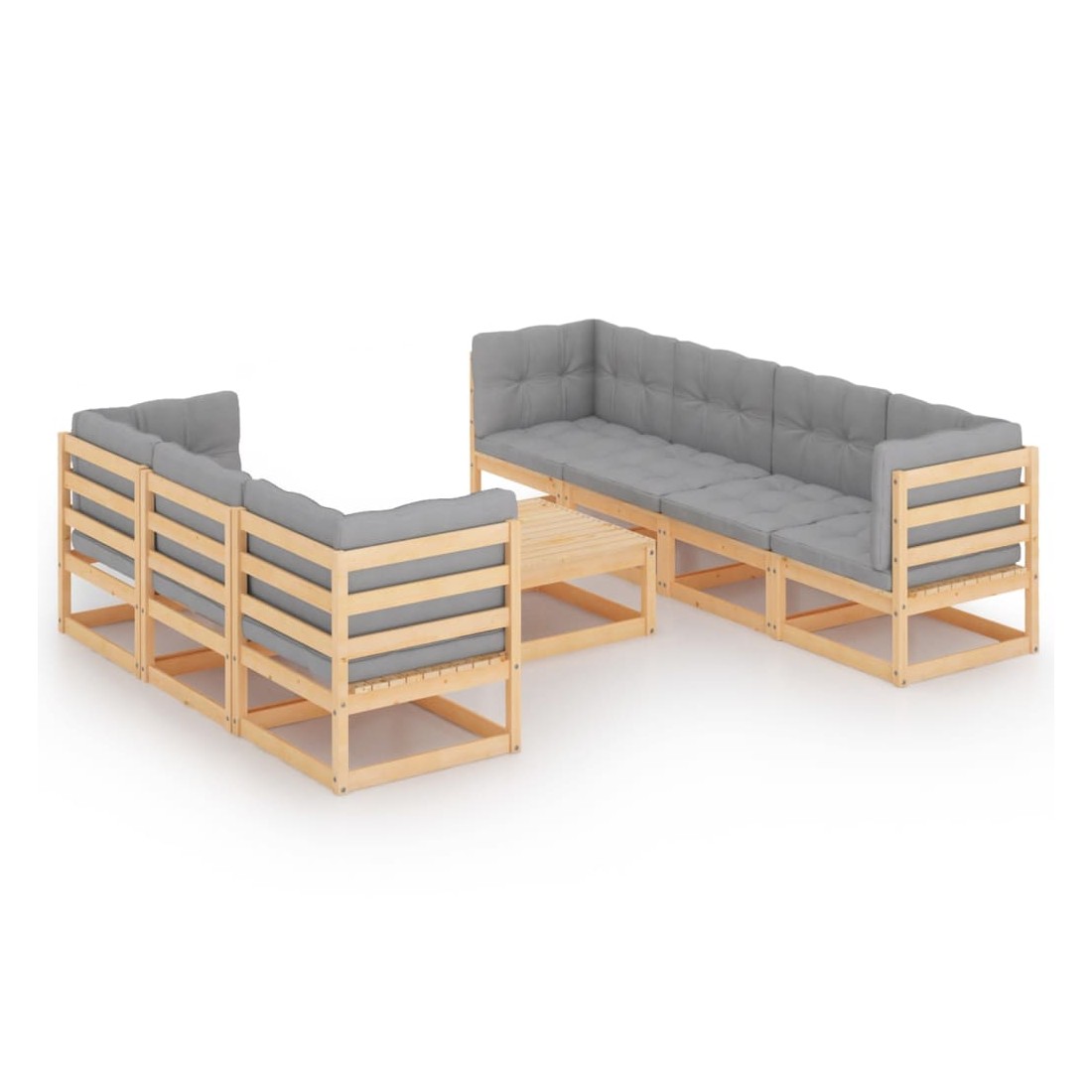 Salon de jardin 8 pcs avec coussins Bois de pin massif