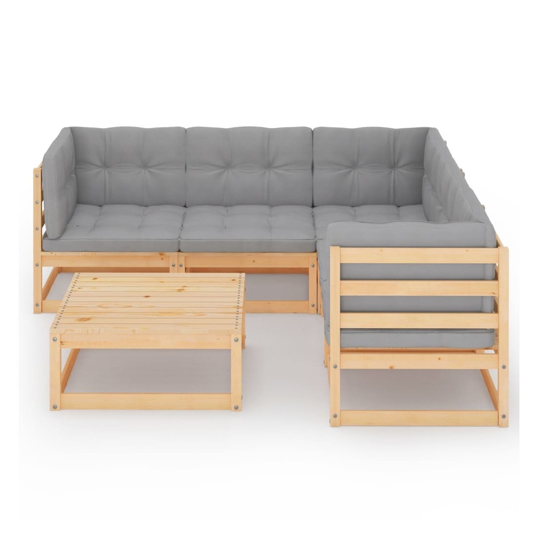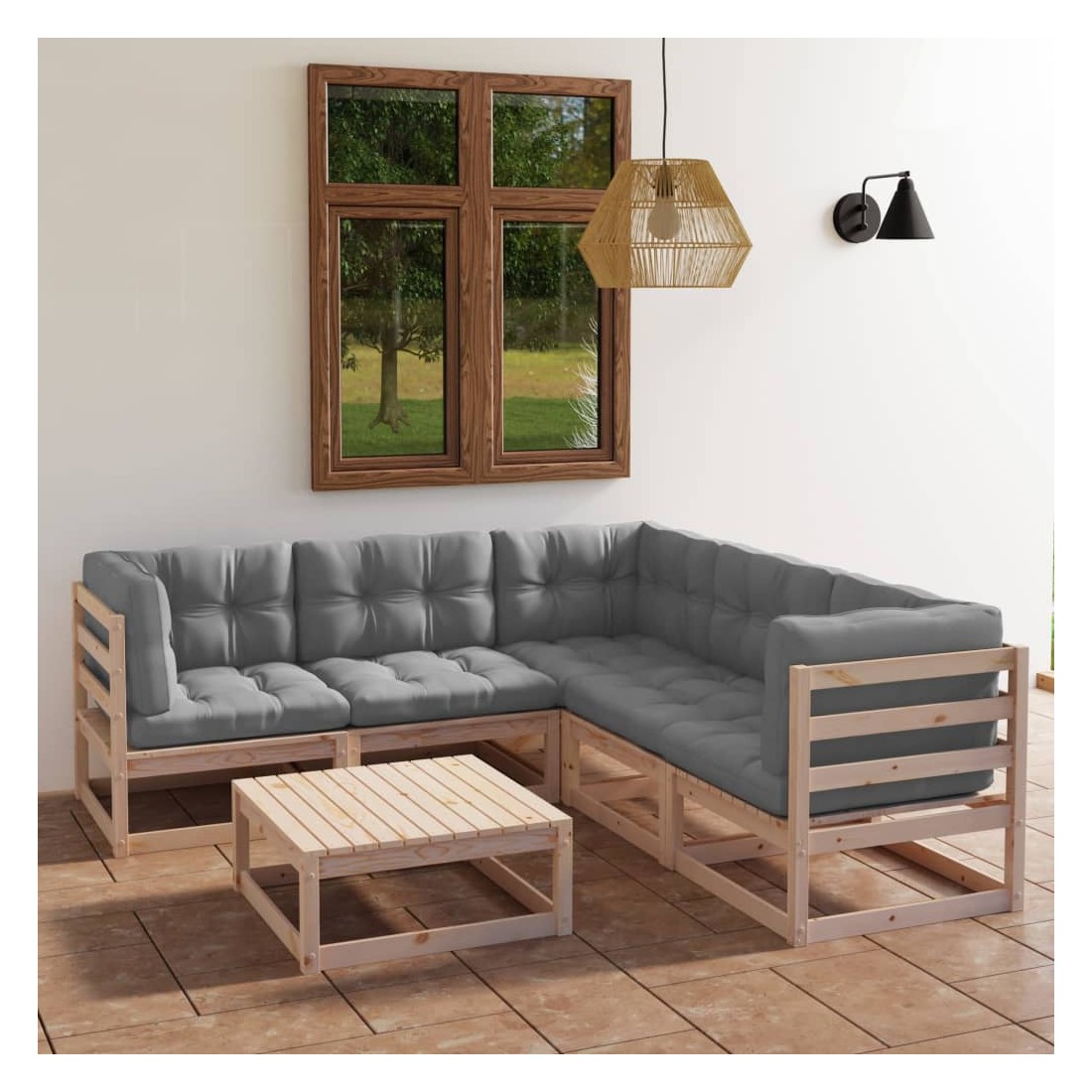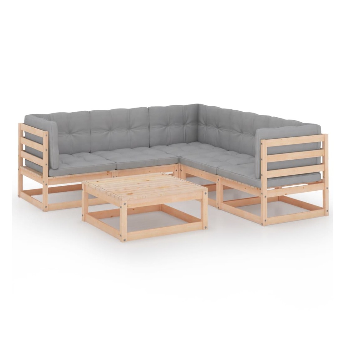Salon de jardin 6 pcs avec coussins Bois de pin massif