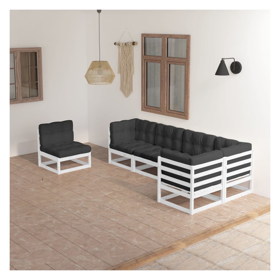 Ce salon de jardin est un excellent choix pour vous détendre et profiter du beau temps, faire une sieste ou discuter avec votre famille ou vos amis. L’ensemble de salon de jardin est fabriqué en bois de pin massif, ce qui le rend robuste et stable. Les coussins ajoutent un confort supplémentaire. Vous pouvez le combiner avec d’autres segments modulaires pour créer vos propres configurations de salon de jardin ! Remarque : afin de prolonger la durée de vie des meubles d'extérieur, nous vous recommandons de les protéger avec une housse imperméable.