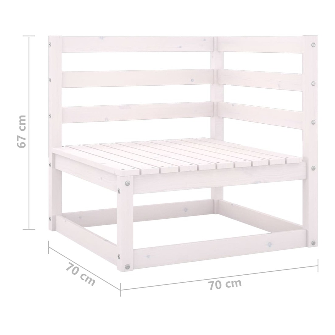 - Dimensions du canapé central/d'angle : 70 x 70 x 67 cm (l x P x H)