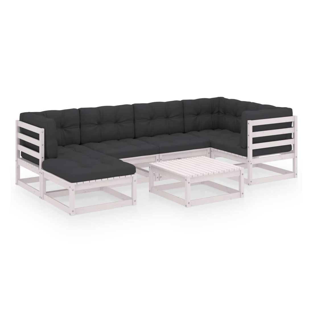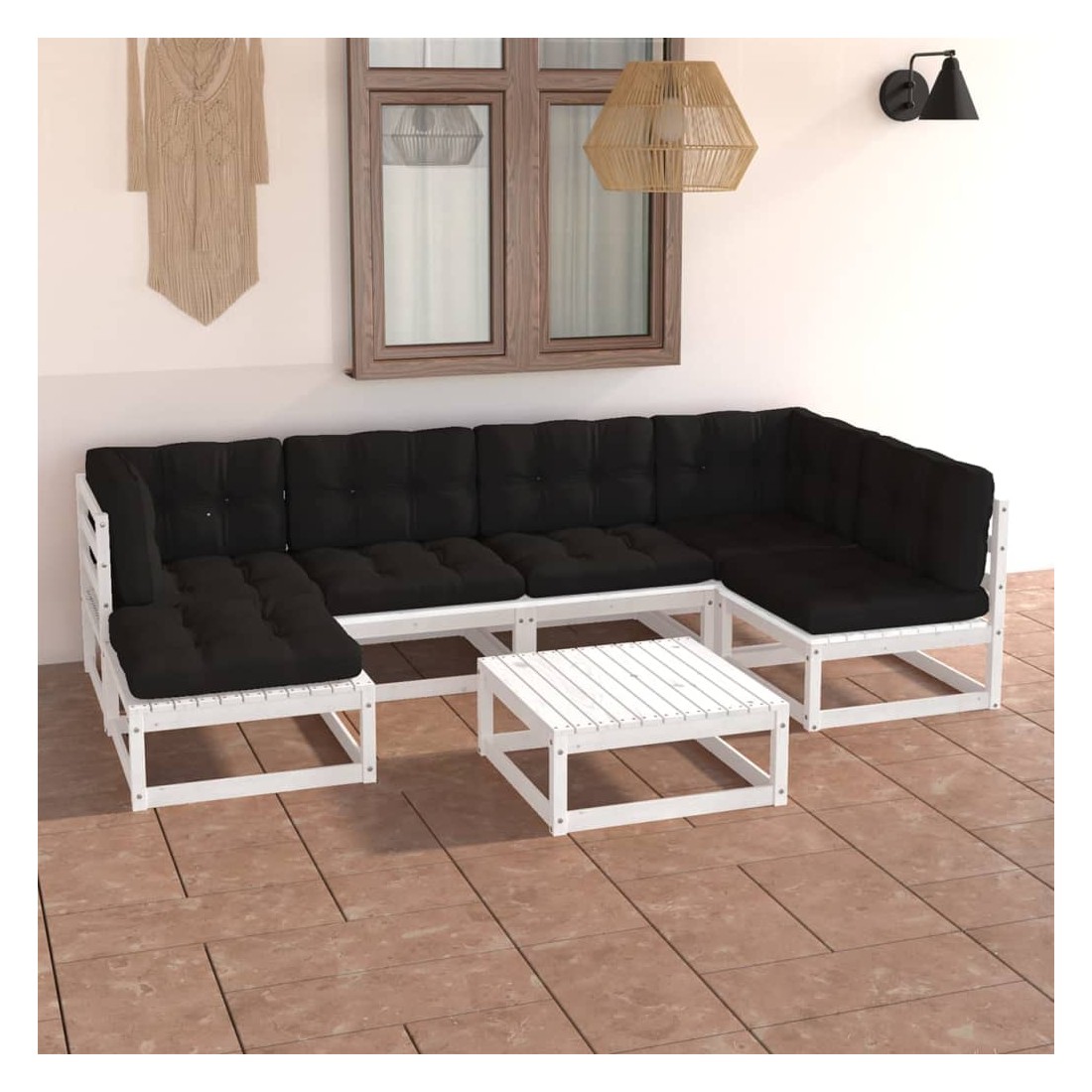 Ce salon de jardin est un excellent choix pour vous détendre et profiter du beau temps, faire une sieste ou discuter avec votre famille ou vos amis. L’ensemble de salon de jardin est fabriqué en bois de pin massif, ce qui le rend robuste et stable. Les coussins ajoutent un confort supplémentaire. Vous pouvez le combiner avec d’autres segments modulaires pour créer vos propres configurations de salon de jardin ! Remarque : afin de prolonger la durée de vie des meubles d'extérieur, nous vous recommandons de les protéger avec une housse imperméable.