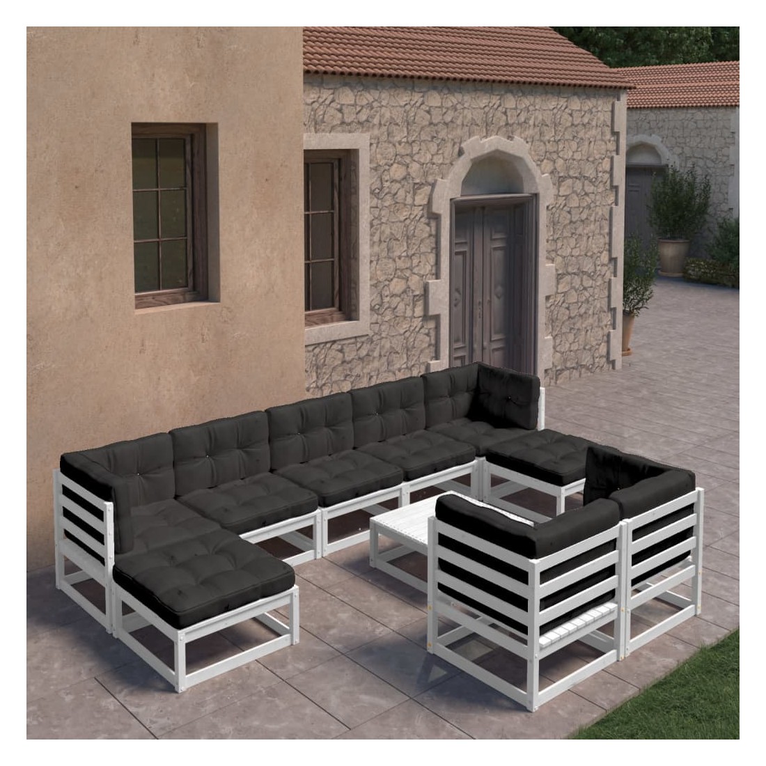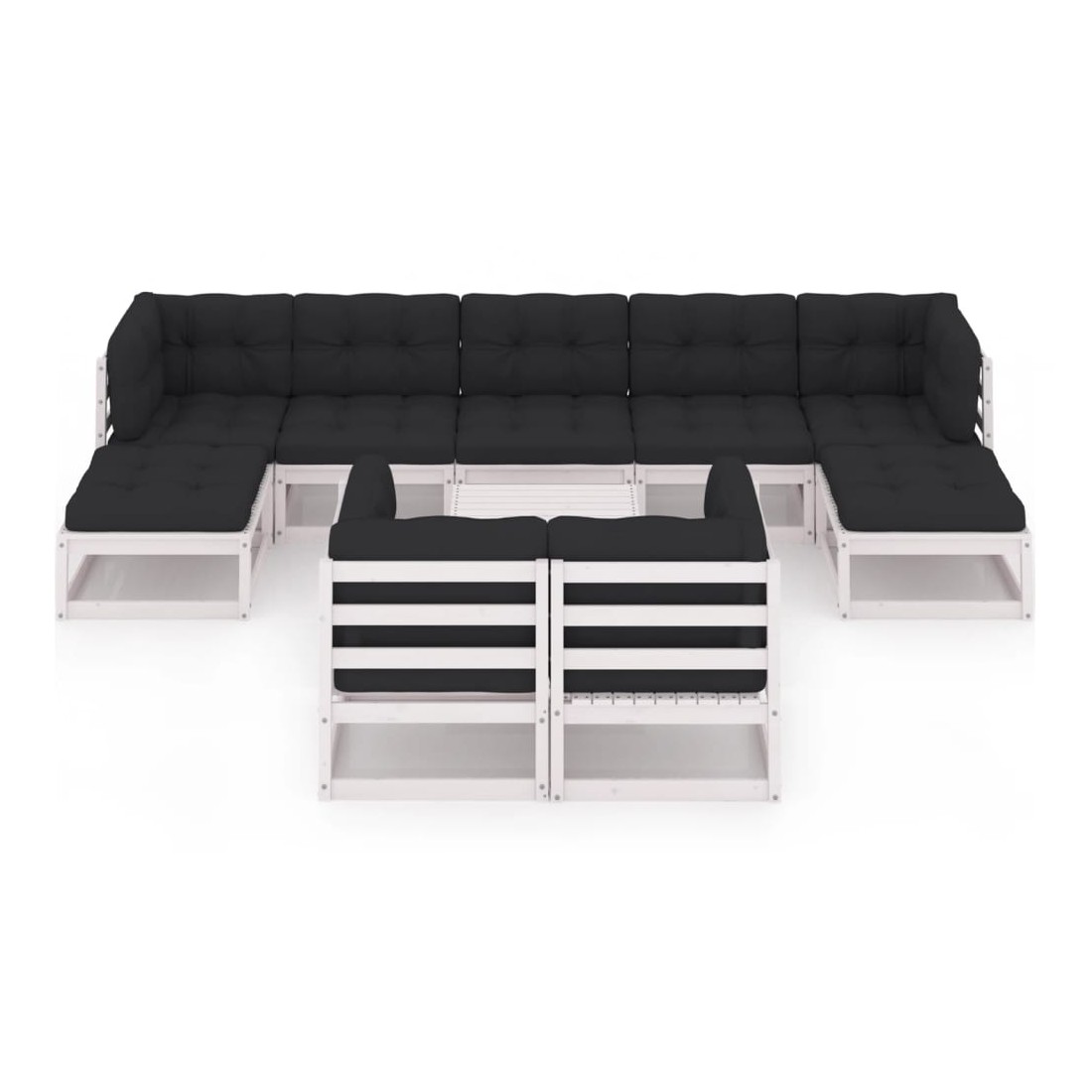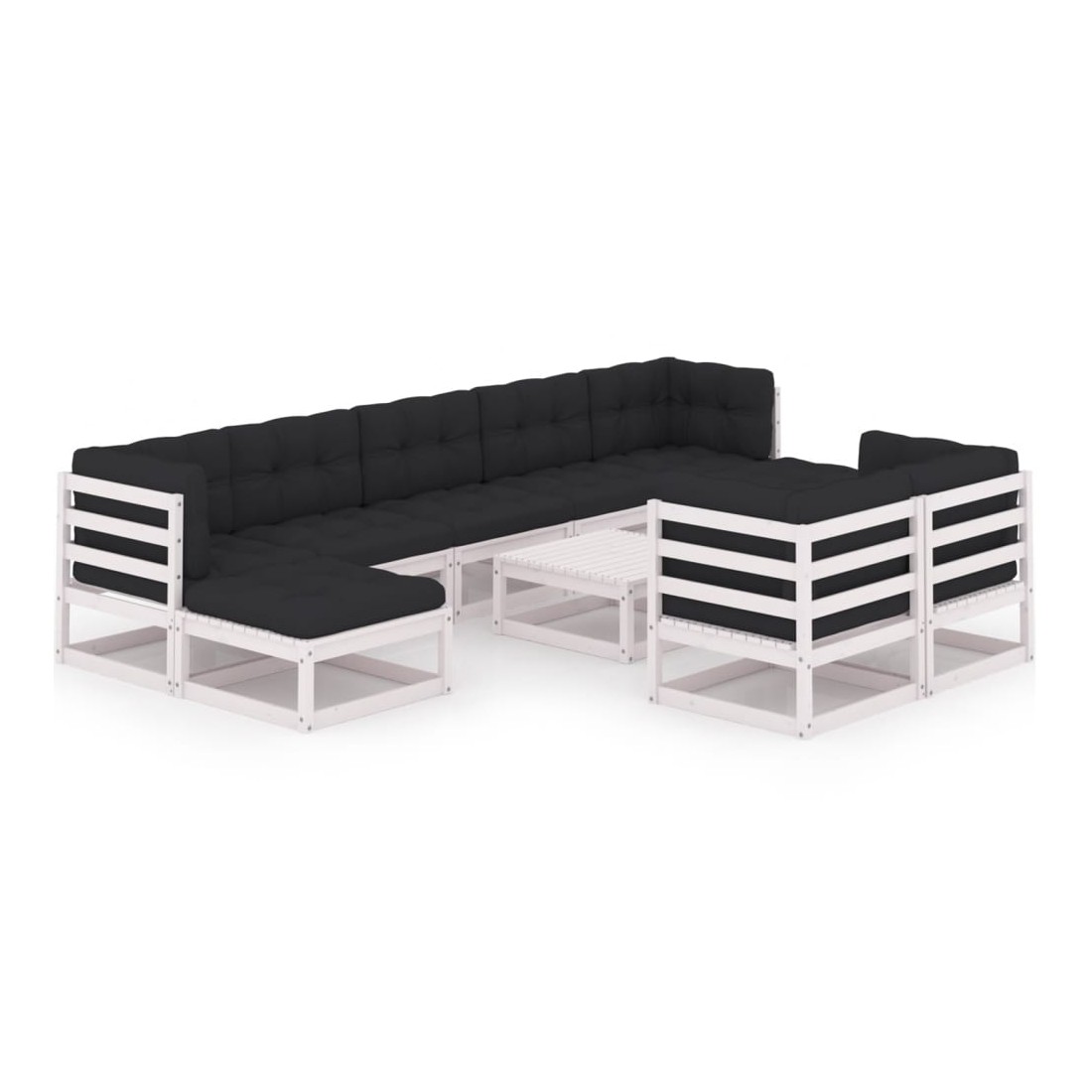 Salon de jardin 10 pcs avec coussins Blanc Bois de pin massif