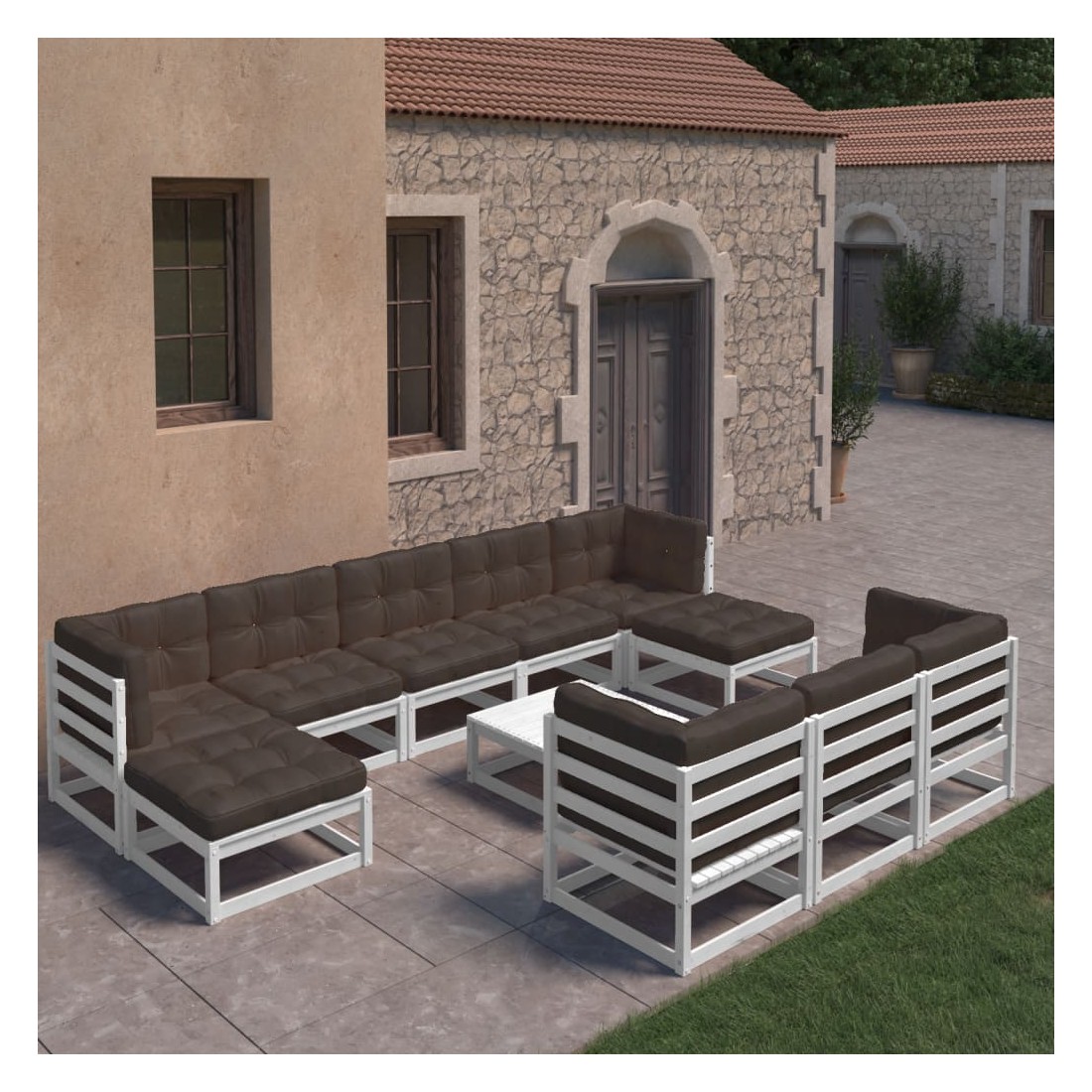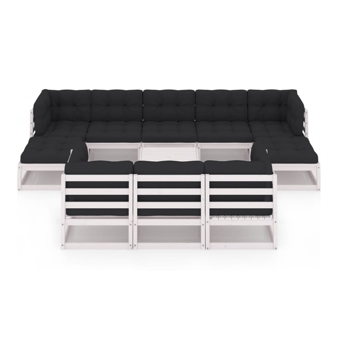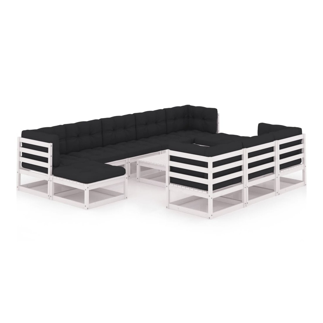 Salon de jardin 11 pcs avec coussins Blanc Bois de pin massif
