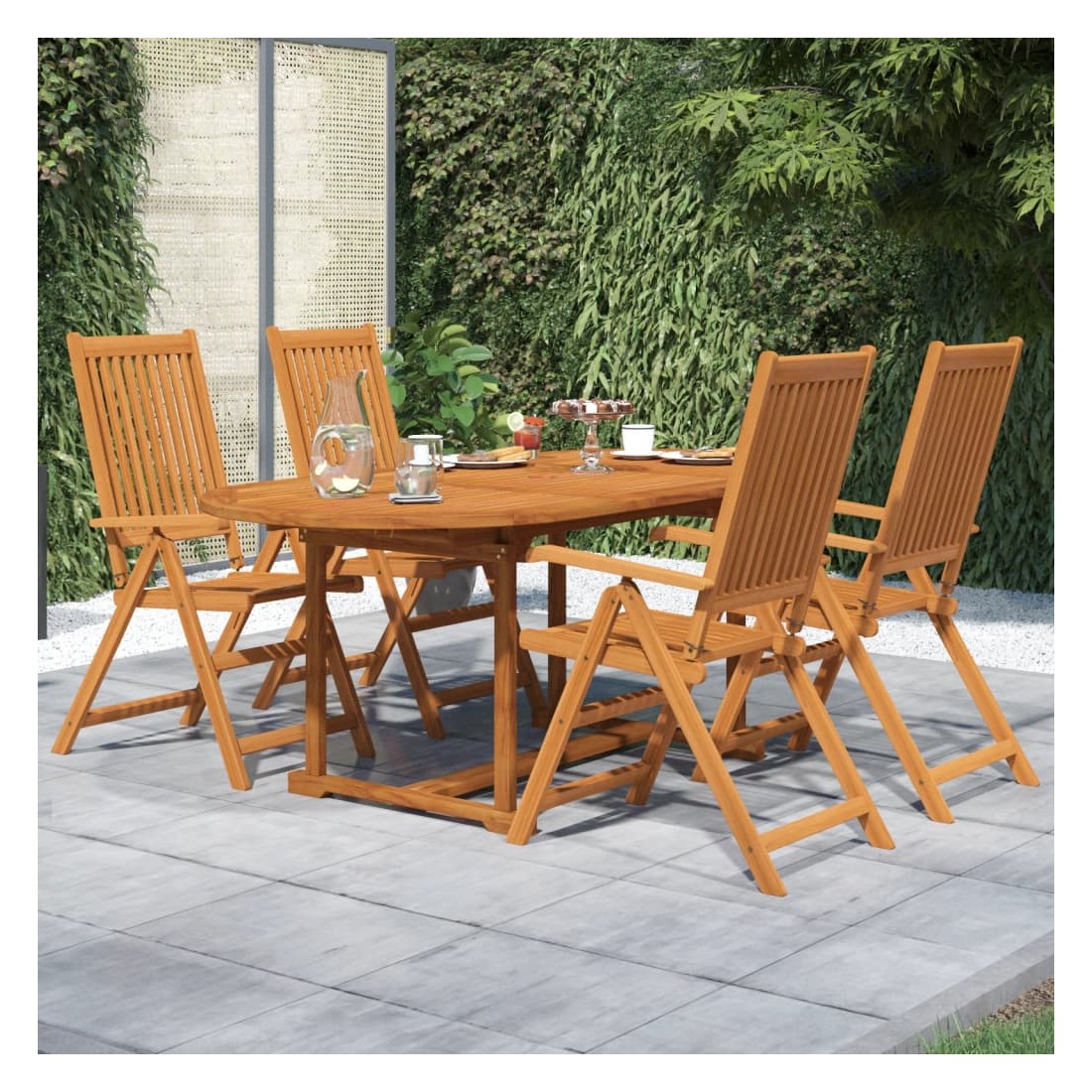 vidaXLProfitez d'un bon repas en plein air avec votre famille et vos amis avec cet ensemble de salle à manger de jardin en bois ! Matériau de qualité supérieure : cet ensemble de salle à manger est fabriqué en bois d'acacia massif, un bois dur tropical, qui résiste aux intempéries et est durable pour des années d'utilisation. La surface à finition à l'huile est facile à nettoyer avec un chiffon humide.Table extensible : la table à manger est extensible, répondant à vos différents besoins.Chaise réglable et pliable : la chaise d'extérieur peut être réglée sur 5 positions, vous offrant un confort d'assise optimal. Ces chaises de salle à manger peuvent également être pliées pour économiser de l'espace lorsqu'elles ne sont pas utilisées. Remarque :Afin de prolonger la durée de vie de votre mobilier d'extérieur, nous vous recommandons de le protéger avec une housse imperméable.