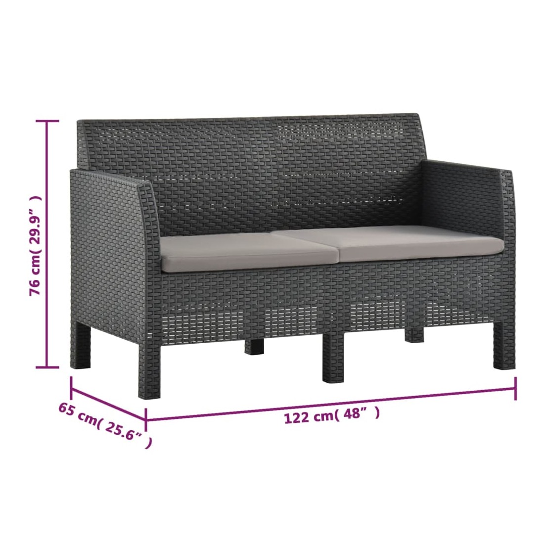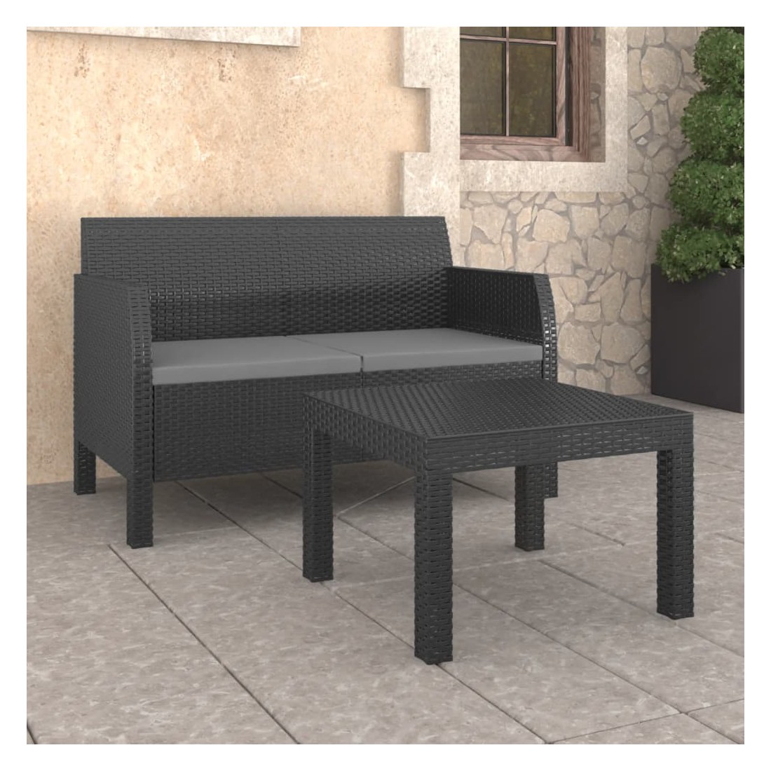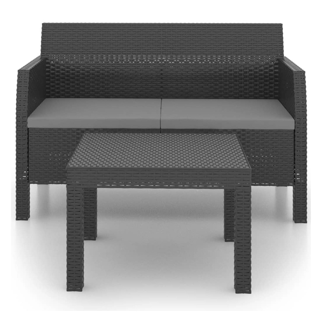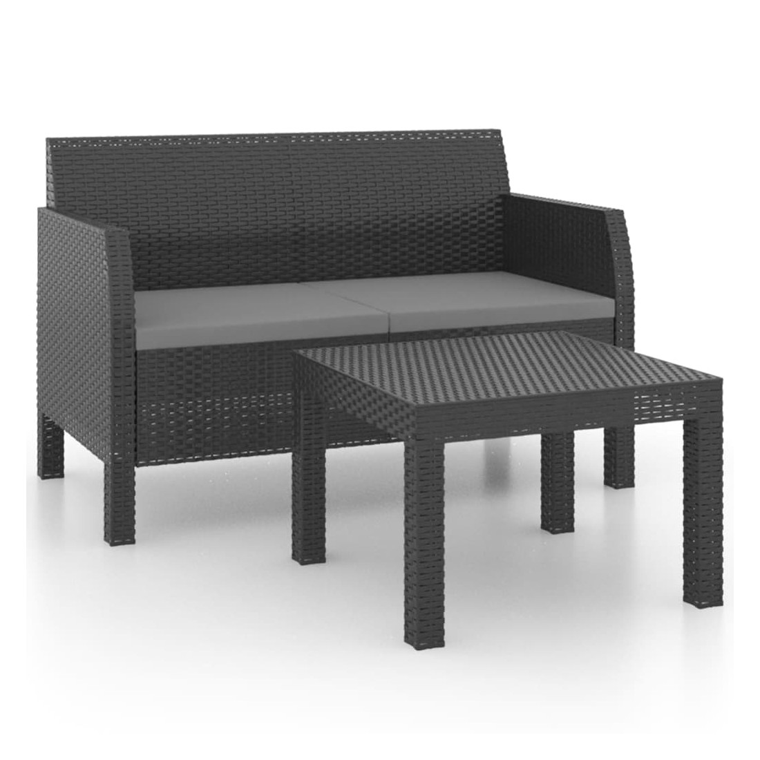 Salon de jardin 2 pcs avec coussins PP Rotin Anthracite
