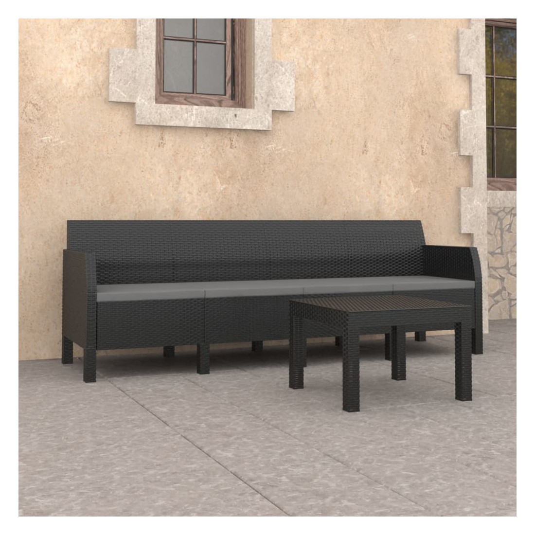 Salon de jardin 2 pcs avec coussins PP Rotin Anthracite