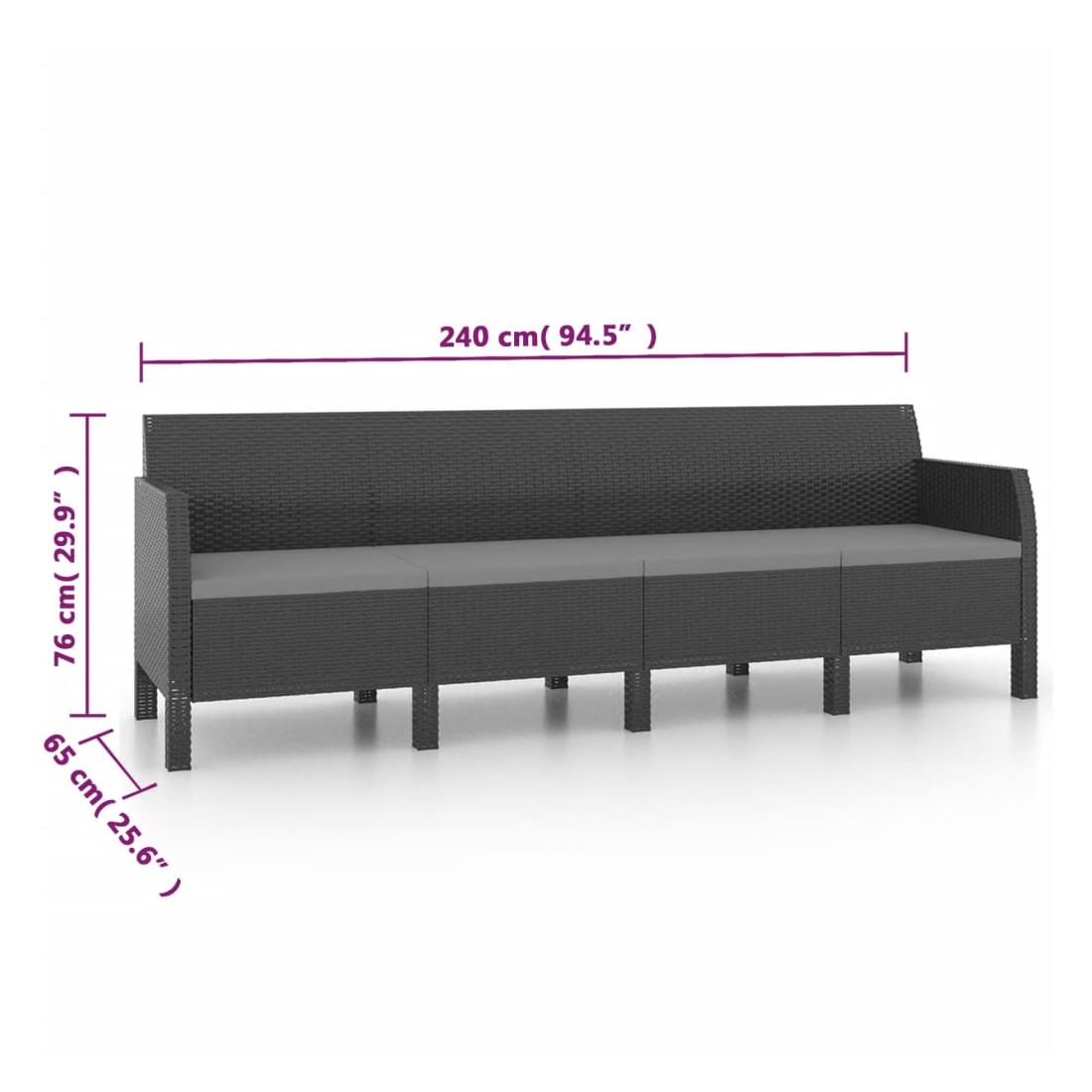 • Dimensions du canapé : 240 x 65 x 76 cm (l x P x H)
