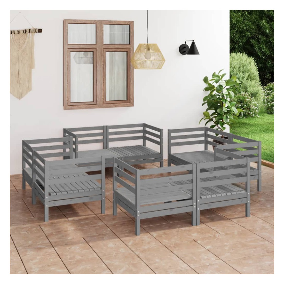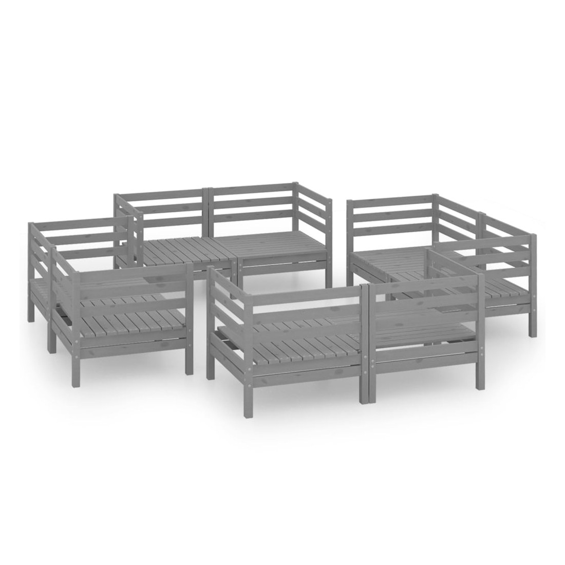 Salon de jardin 8 pcs Gris Bois de pin massif