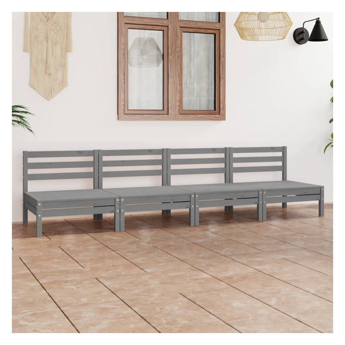 Salon de jardin 4 pcs Gris Bois de pin massif