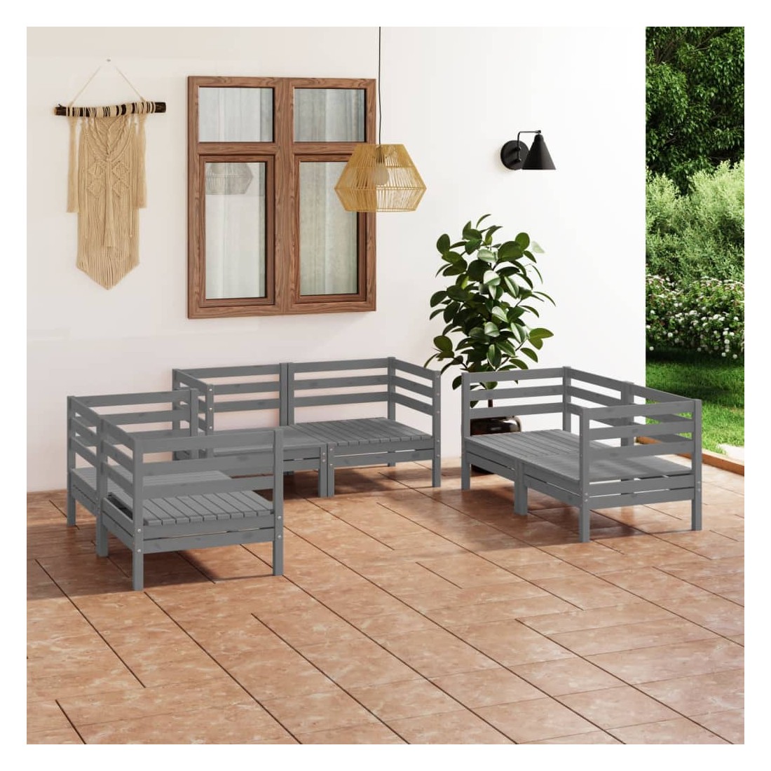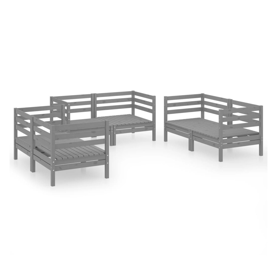 Salon de jardin 6 pcs Gris Bois de pin massif