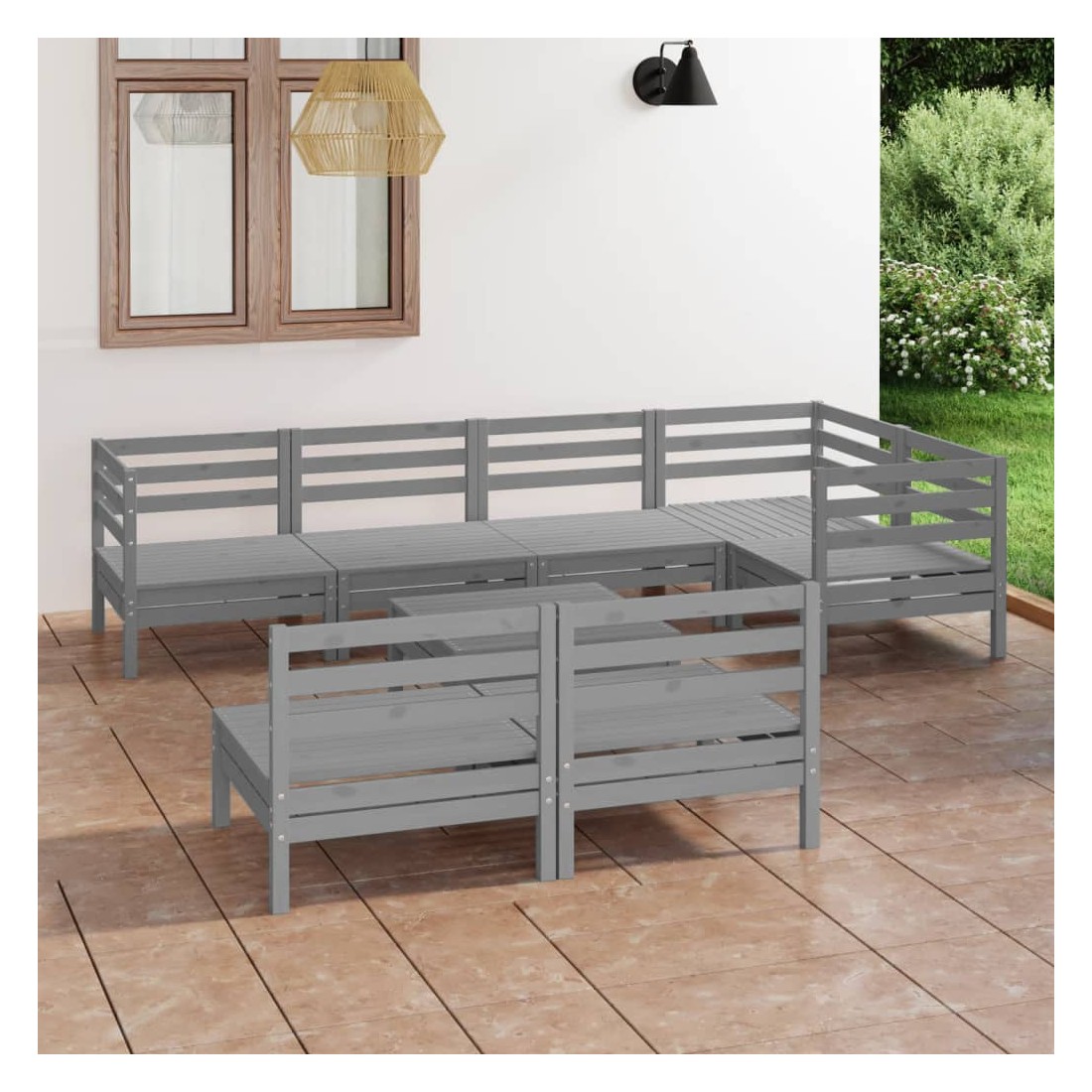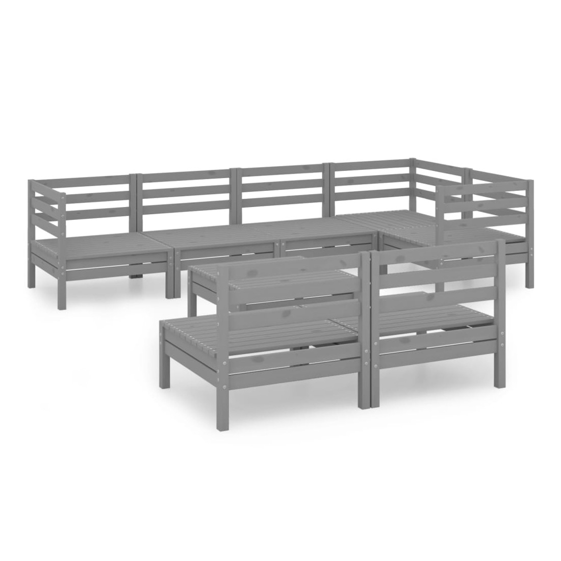 Salon de jardin 8 pcs Bois de pin massif Gris