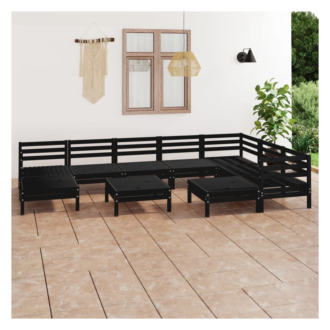 Salon de jardin 10 pcs Bois de pin massif Noir