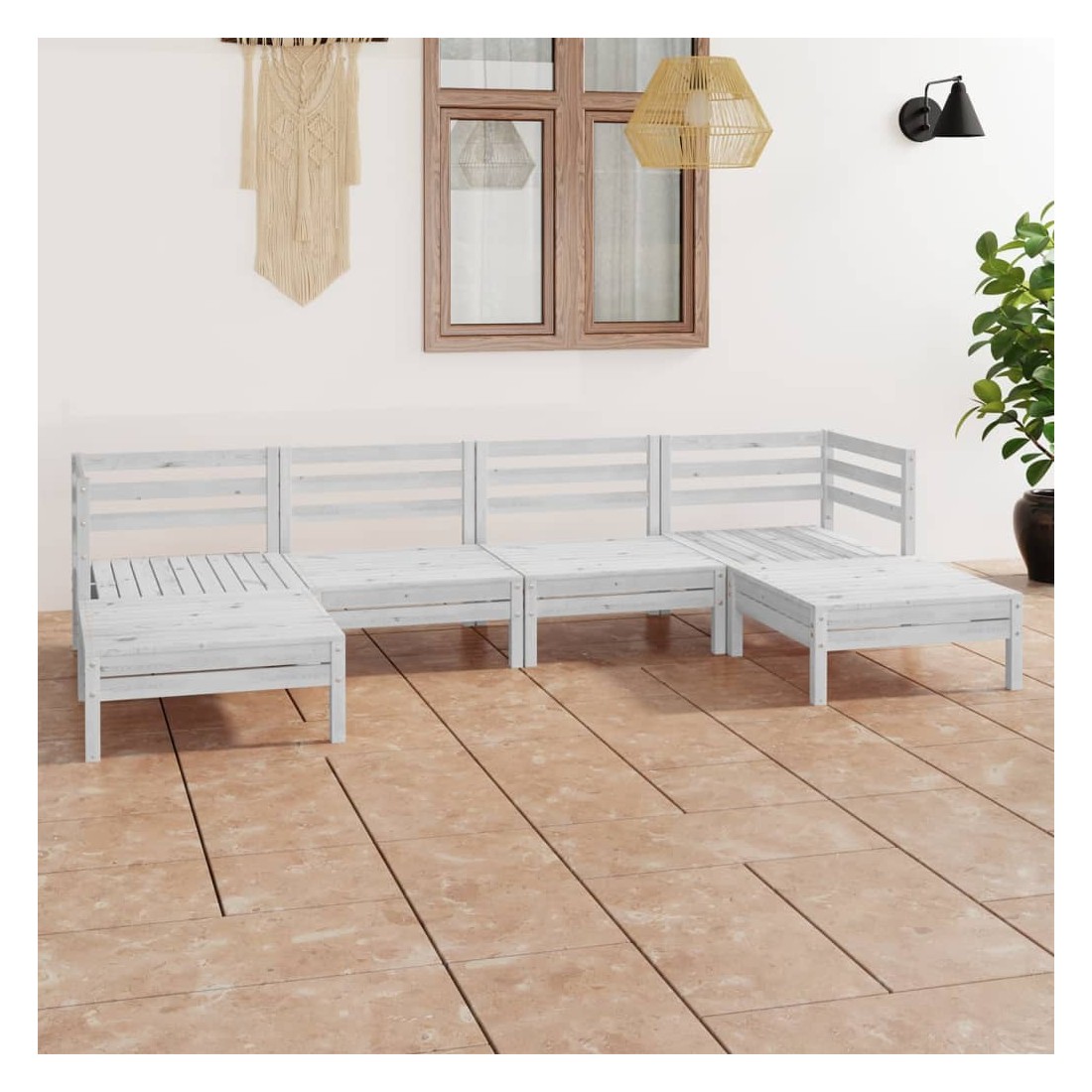 Salon de jardin 6 pcs Blanc Bois de pin massif