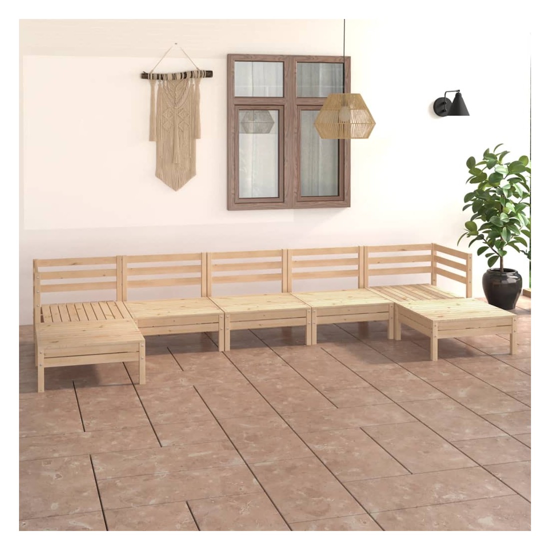 Cet ensemble de salon de jardin en bois est un choix idéal pour vous détendre, profiter du beau temps, faire une sieste ou discuter en famille ou entre amis. Avec son design intemporel de palette, l'ensemble de canapés en bois ajoute une touche de charme rustique à votre terrasse, jardin ou salon. Fabriqué en bois de pin massif, cet ensemble de salon de patio est très durable et résistant aux intempéries. Cet ensemble de meubles a une construction solide et nécessite peu d'entretien. De plus, la conception modulaire permet également de placer l'ensemble dans n'importe quel arrangement selon vos goûts. Remarque : afin de prolonger la durée de vie des meubles d'extérieur, nous vous recommandons de les protéger avec une housse imperméable.