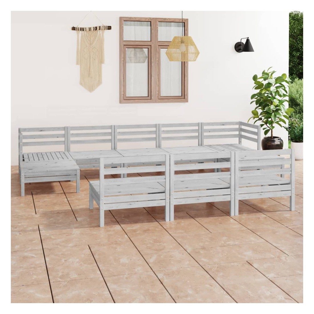 Cet ensemble de salon de jardin en bois est un choix idéal pour vous détendre, profiter du beau temps, faire une sieste ou discuter en famille ou entre amis. Avec son design intemporel de palette, l'ensemble de canapés en bois ajoute une touche de charme rustique à votre terrasse, jardin ou salon. Fabriqué en bois de pin massif, cet ensemble de salon de patio est très durable et résistant aux intempéries. Cet ensemble de meubles a une construction solide et nécessite peu d'entretien. De plus, la conception modulaire permet également de placer l'ensemble dans n'importe quel arrangement selon vos goûts. Remarque : afin de prolonger la durée de vie des meubles d'extérieur, nous vous recommandons de les protéger avec une housse imperméable.