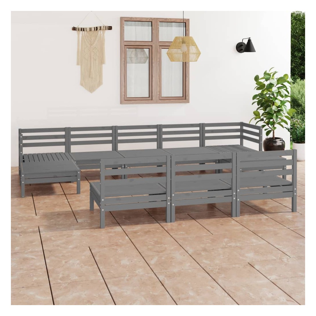 Salon de jardin 10 pcs Gris Bois de pin massif