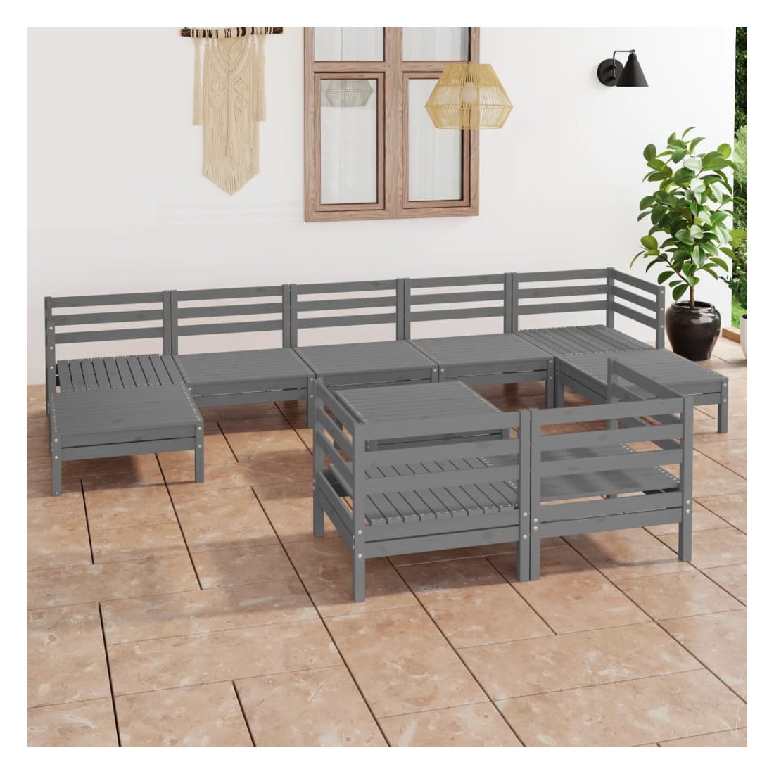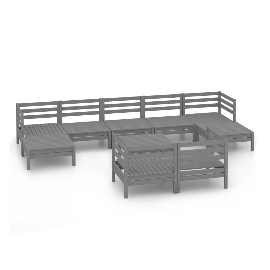 Salon de jardin 10 pcs Gris Bois de pin massif