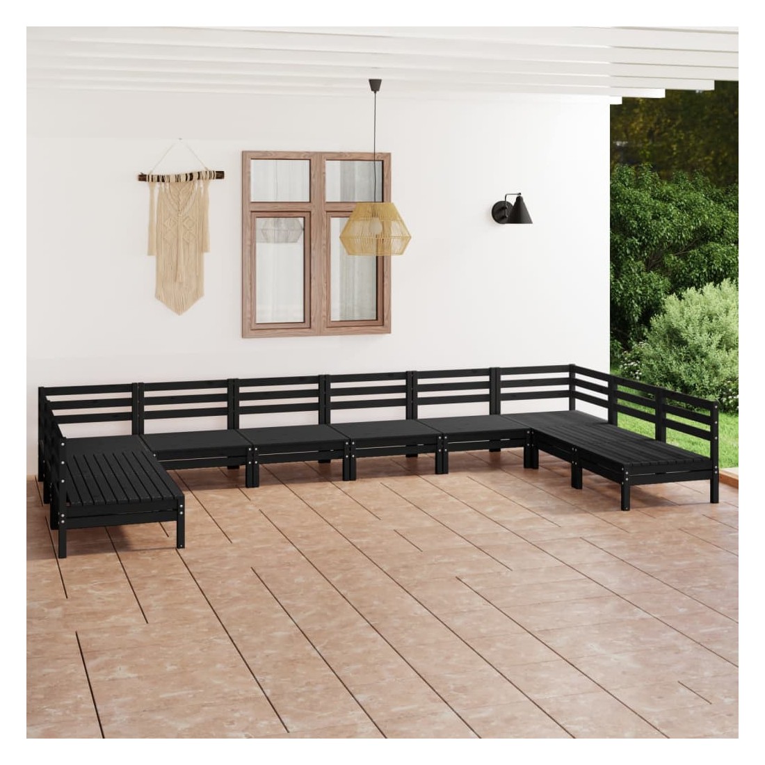 Salon de jardin 10 pcs Noir Bois de pin massif