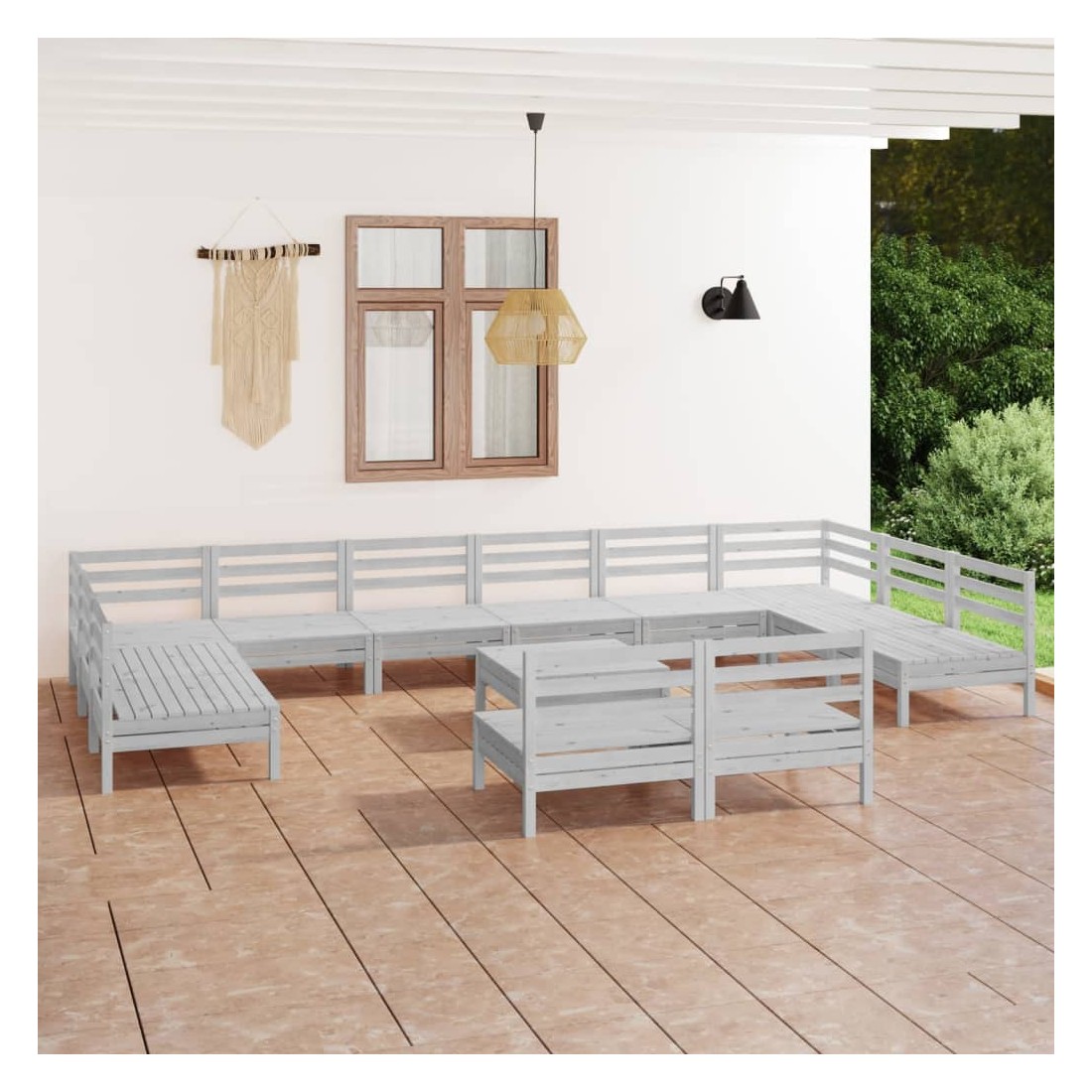 Salon de jardin 13 pcs Blanc Bois de pin massif