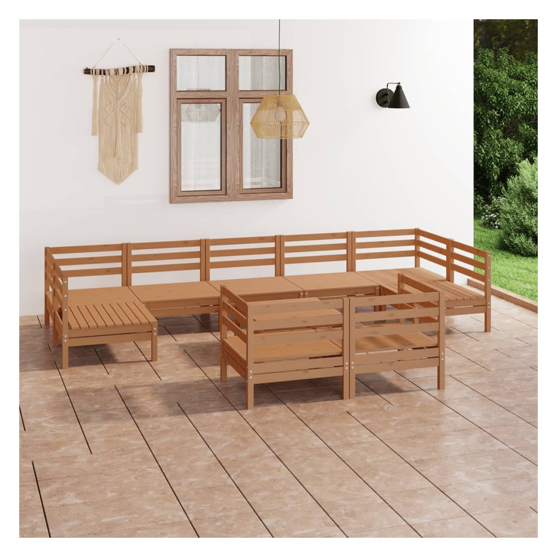 Salon de jardin 10 pcs Marron miel Bois de pin massif
