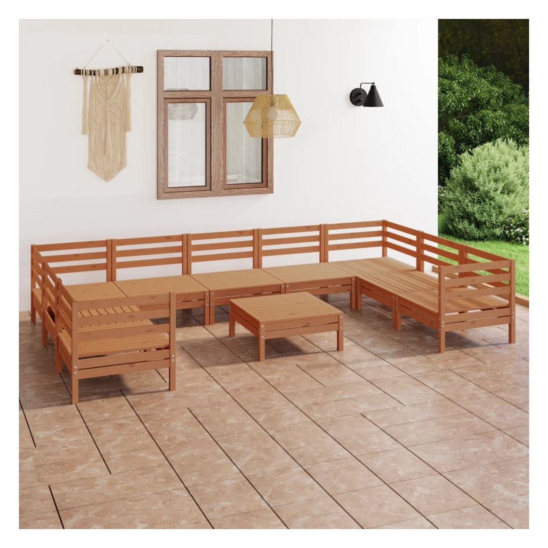 Salon de jardin 10 pcs Marron miel Bois de pin massif