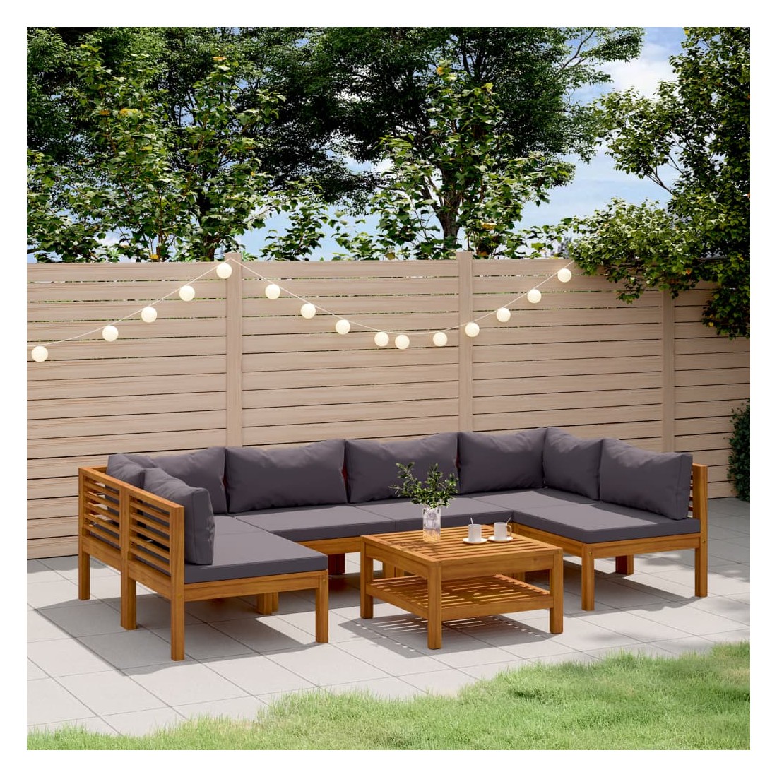 Salon de jardin 7 pcs avec coussin Bois d'acacia solide