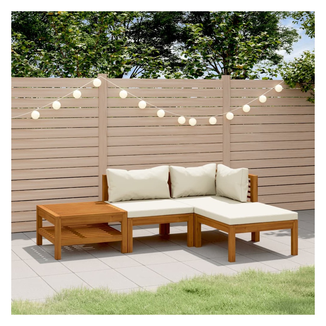 Salon de jardin 4 pcs avec coussin crème Bois d'acacia solide