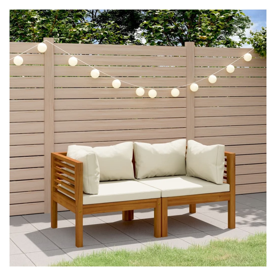 Canapé de jardin 2 places et coussin crème Bois d'acacia massif