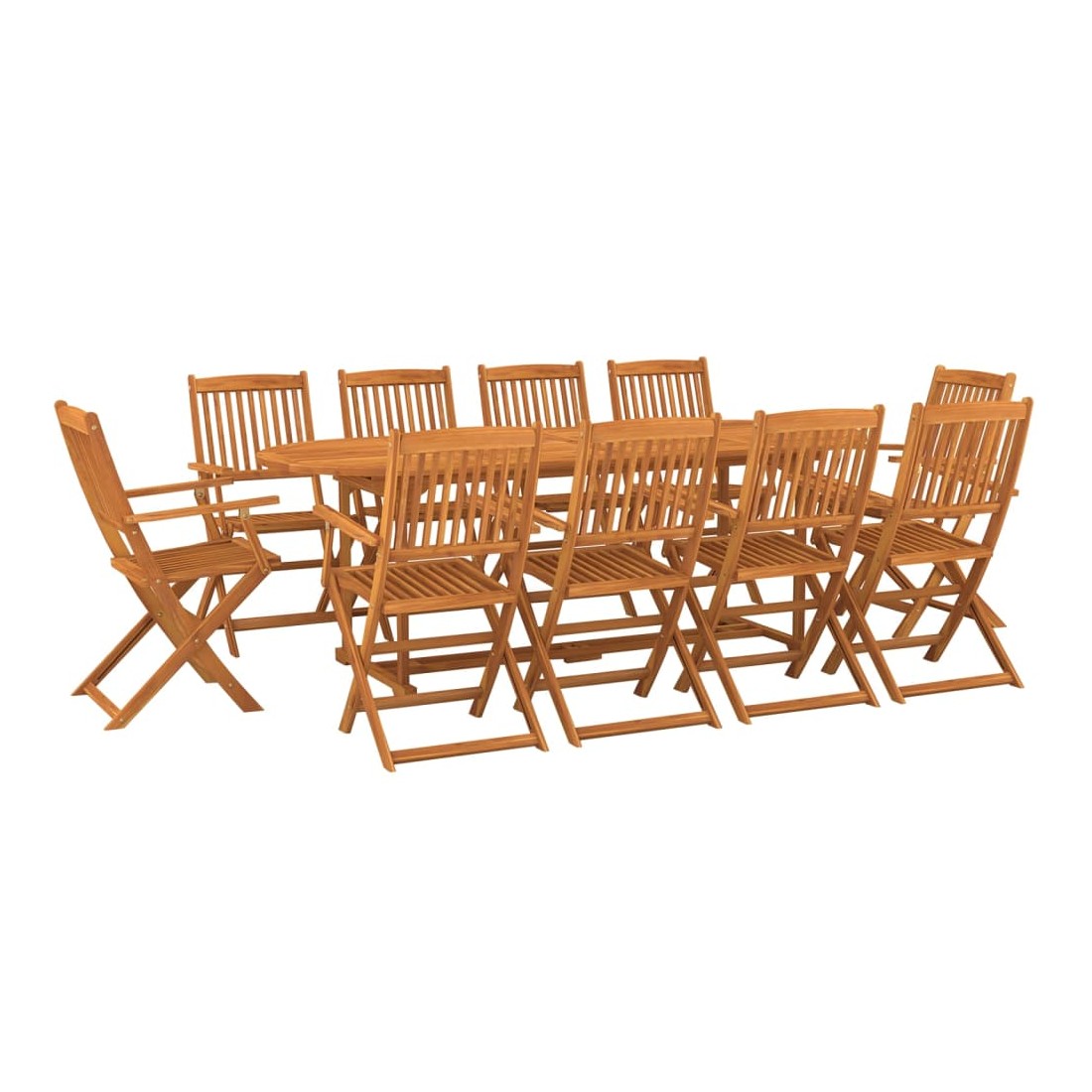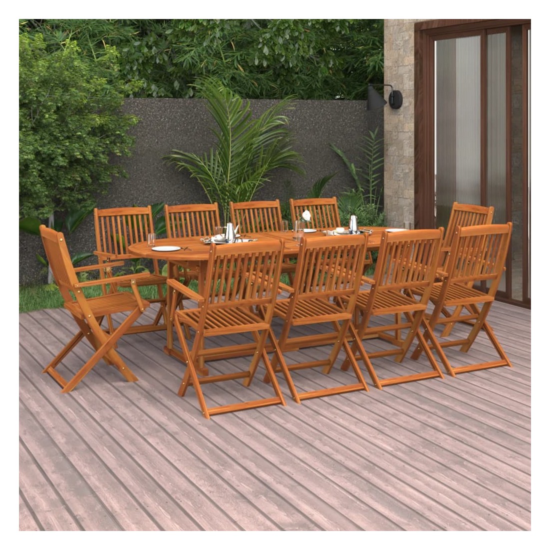 Créez une esthétique convaincante et uniforme dans votre espace extérieur avec cet ensemble de salle à manger de jardin en bois ! Cet ensemble de salle à manger d'extérieur est fabriqué en bois d'acacia massif, un bois dur tropical, qui est résistant aux intempéries et durable pour des années d'utilisation. La surface finie à l'huile est facile à nettoyer avec un chiffon humide. De plus, les chaises de patio peuvent être pliées dans un format compact pour économiser de l'espace lorsqu'elles ne sont pas utilisées. Remarque : afin de prolonger la durée de vie des meubles d'extérieur, nous vous recommandons de les protéger avec une housse imperméable.