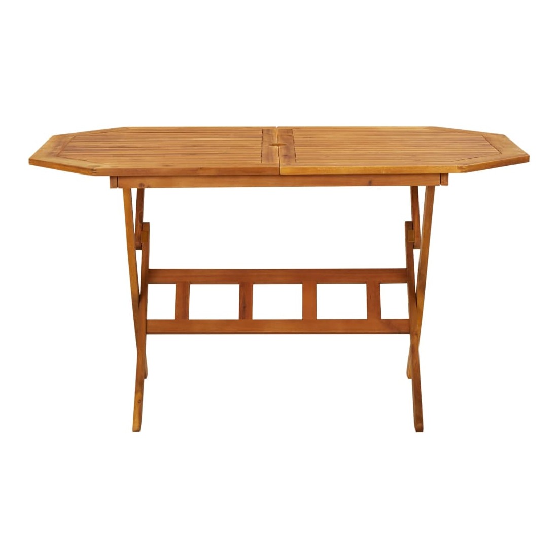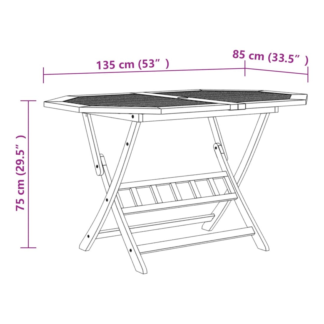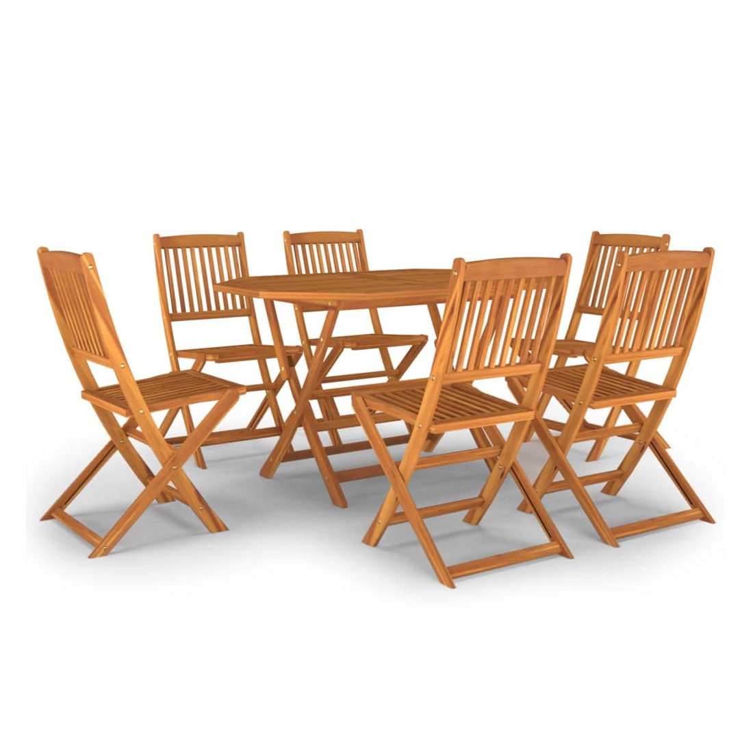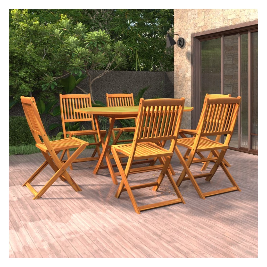 Créez une esthétique convaincante et uniforme dans votre espace extérieur avec cet ensemble de salle à manger de jardin en bois ! Cet ensemble de salle à manger d'extérieur est fabriqué en bois d'acacia massif, un bois dur tropical, qui est résistant aux intempéries et durable pour des années d'utilisation. La surface finie à l'huile est facile à nettoyer avec un chiffon humide. De plus, les chaises et la table de patio peuvent être pliées dans un format compact pour économiser de l'espace lorsqu'elles ne sont pas utilisées. Remarque : afin de prolonger la durée de vie des meubles d'extérieur, nous vous recommandons de les protéger avec une housse imperméable.