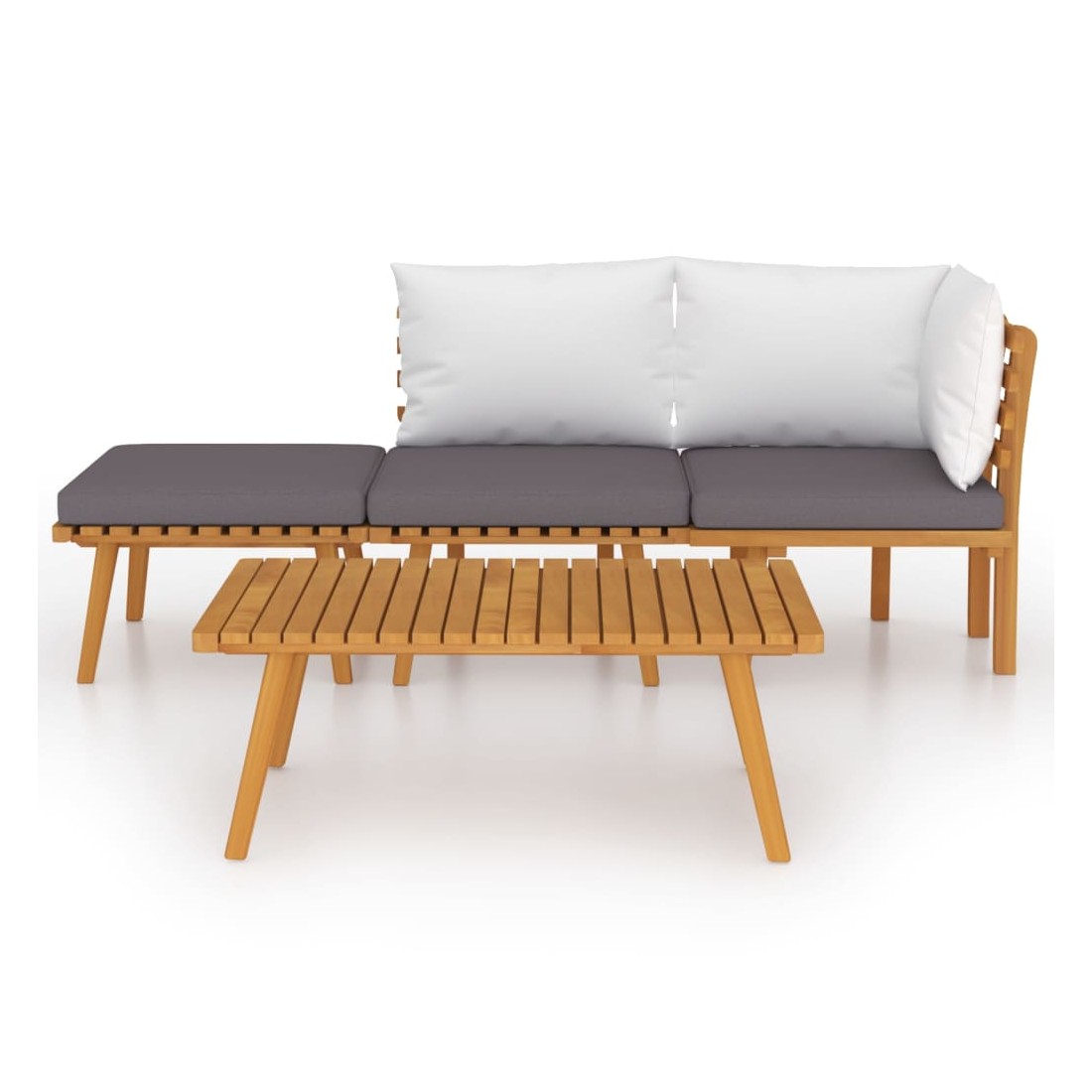 Ce salon de jardin en bois est un excellent choix pour vous détendre et profiter du beau temps, faire une sieste ou discuter avec votre famille ou vos amis. Avec un design à lattes intemporel, l’ensemble de salon en bois ajoute une touche de charme rustique à votre patio, terrasse ou jardin. Fabriqué en bois d'acacia massif, l'ensemble de mobilier d'extérieur est résistant aux intempéries et très durable. Combiné avec les coussins bien rembourrés, cet ensemble de salon de jardin offre le plus grand confort. Vous pouvez le combiner avec d'autres segments modulaires pour créer vos propres configurations d'ensemble de salon de jardin ! Remarque : afin de prolonger la durée de vie des meubles d'extérieur, nous vous recommandons de les protéger avec une housse imperméable.