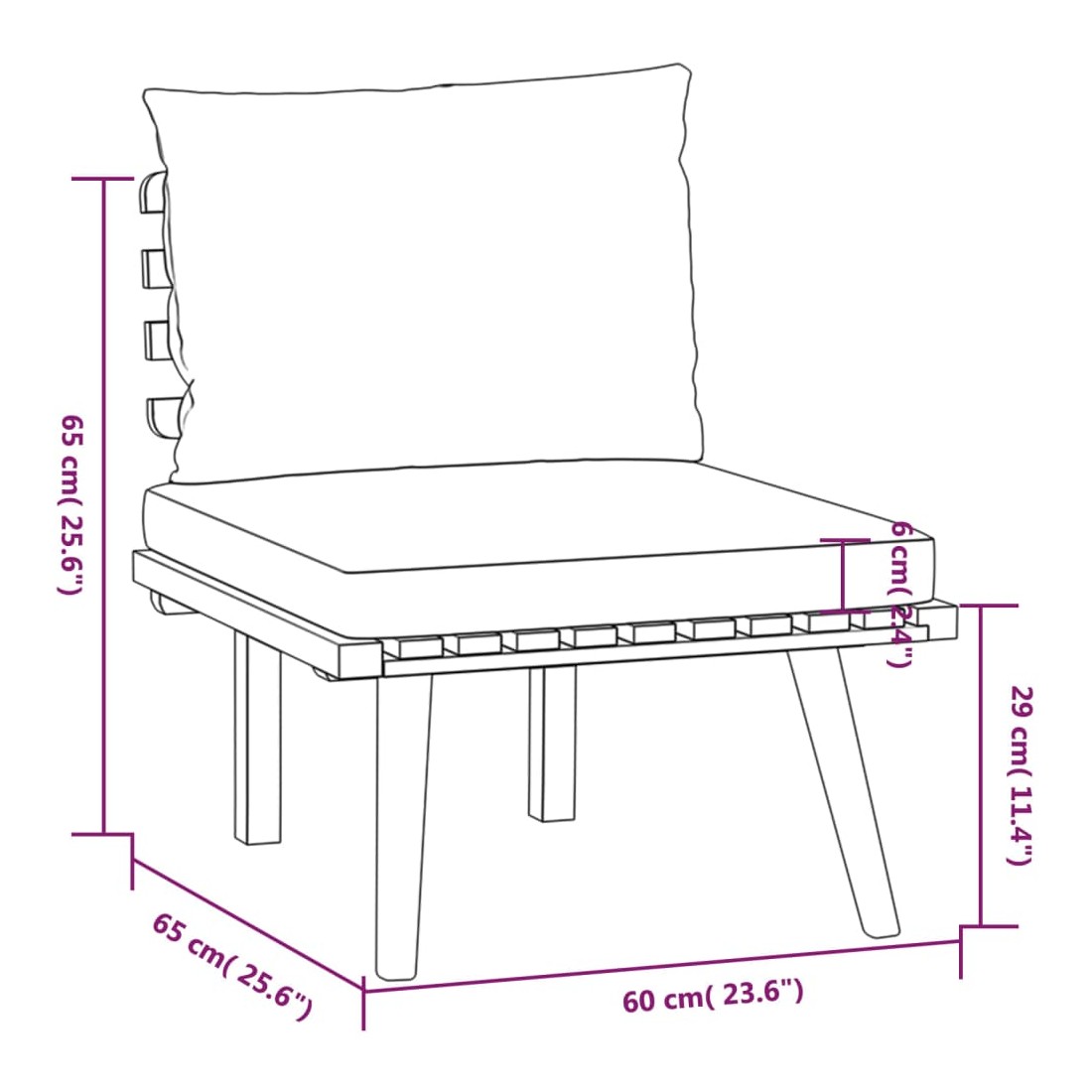 • Hauteur d'assise (hors coussin) : 29 cm