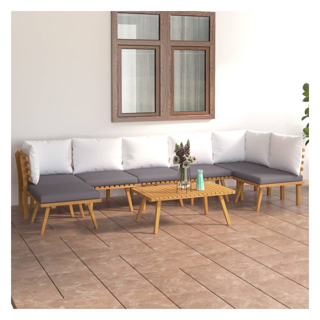 Salon de jardin 8 pcs avec coussins Bois d'acacia solide