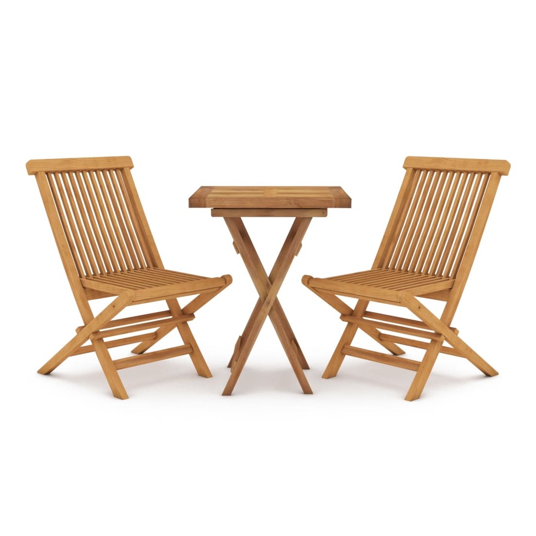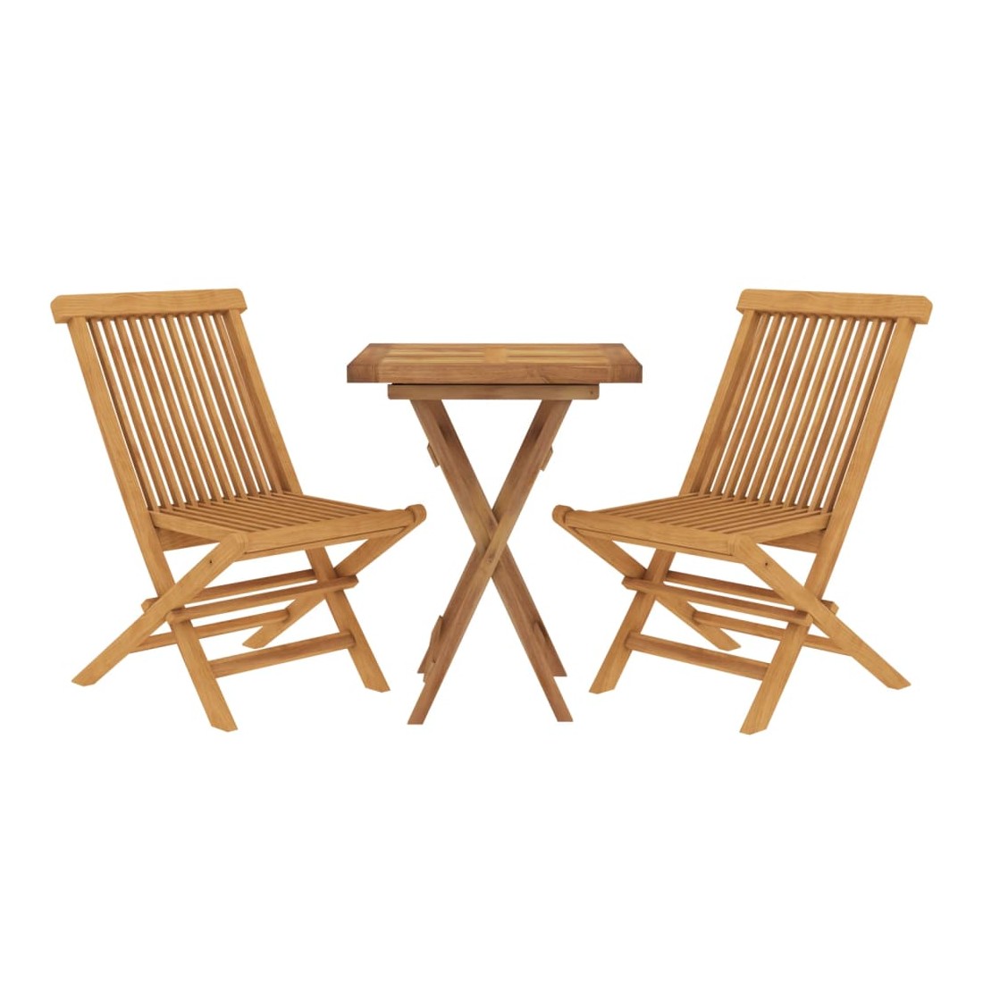 Cet ensemble de salle à manger de jardin en bois, au design élégant, est un excellent choix pour vos repas ou vos moments de détente sur votre patio ou dans votre jardin. Bois de teck massif : le bois de teck massif est un matériau naturel magnifique. Il a été chevronné, séché au four, puis sablé finement pour lui donner une apparence très lisse. Le bois de teck est connu pour sa résistance exceptionnelle et sa résistance aux intempéries.Cadre robuste : le cadre en bois assure robustesse et stabilité.Design pliable : ces chaises et table en bois peuvent être facilement pliées lorsqu'elles ne sont pas utilisées. Remarque :Afin de prolonger la durée de vie de votre mobilier d'extérieur, nous vous recommandons de le protéger avec une housse imperméable.