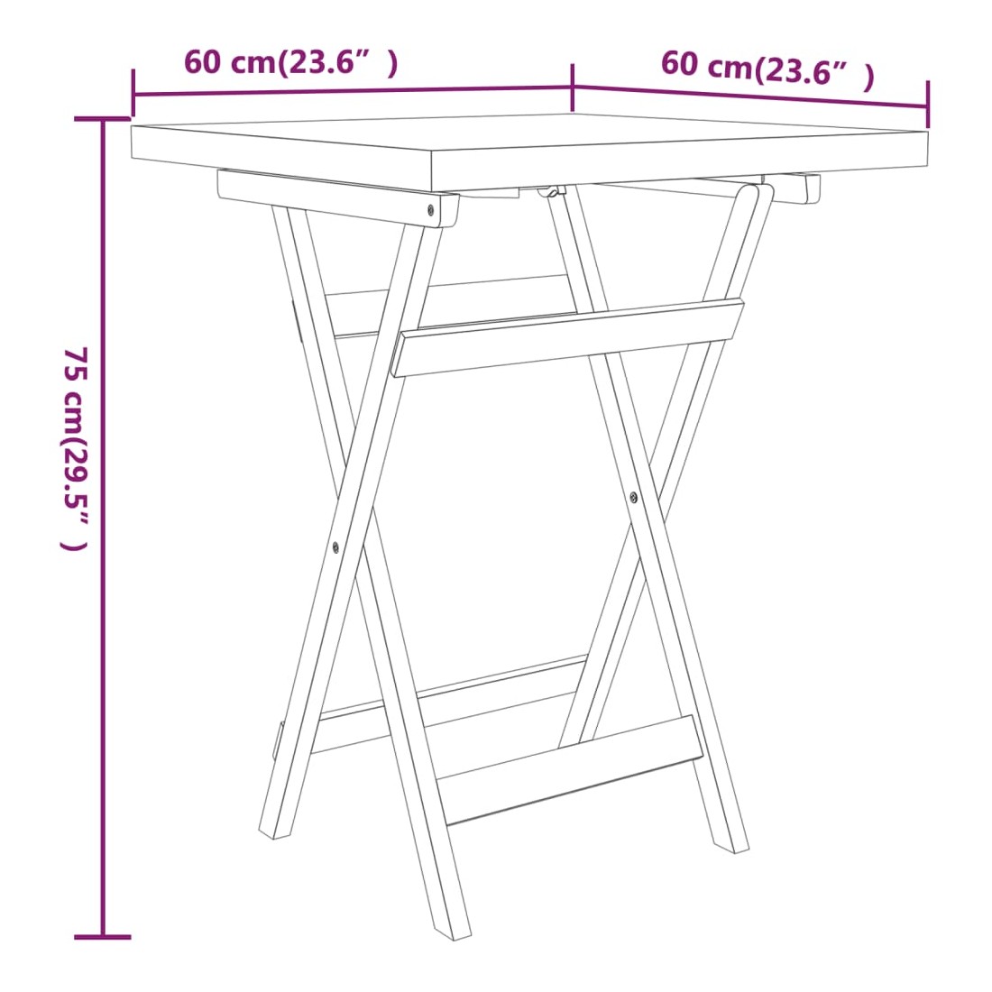 • Dimensions de la table : 60 x 60 x 75 cm (l x P x H)