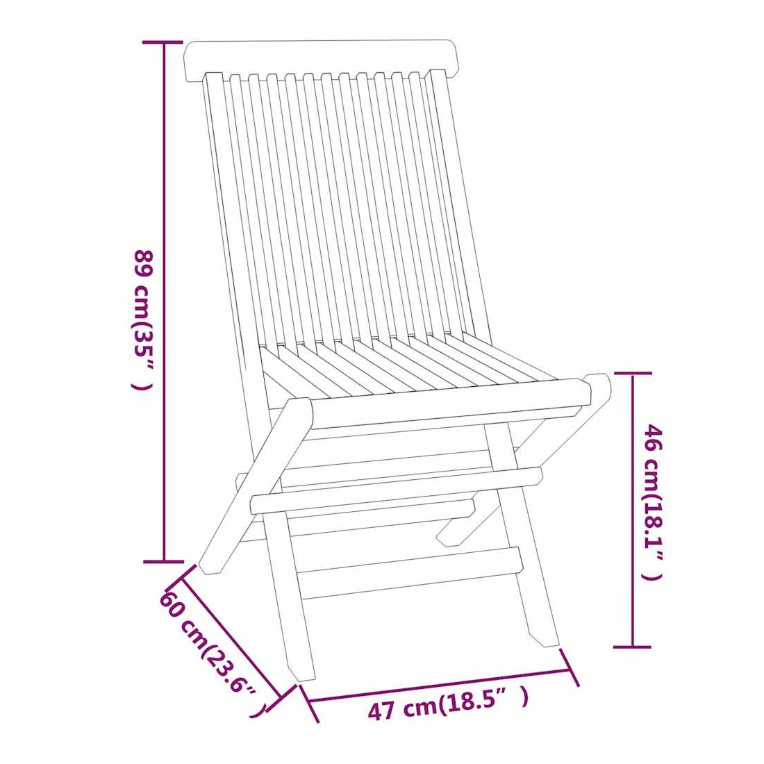 • Dimensions de la chaise : 47 x 60 x 89 cm (l x P x H)