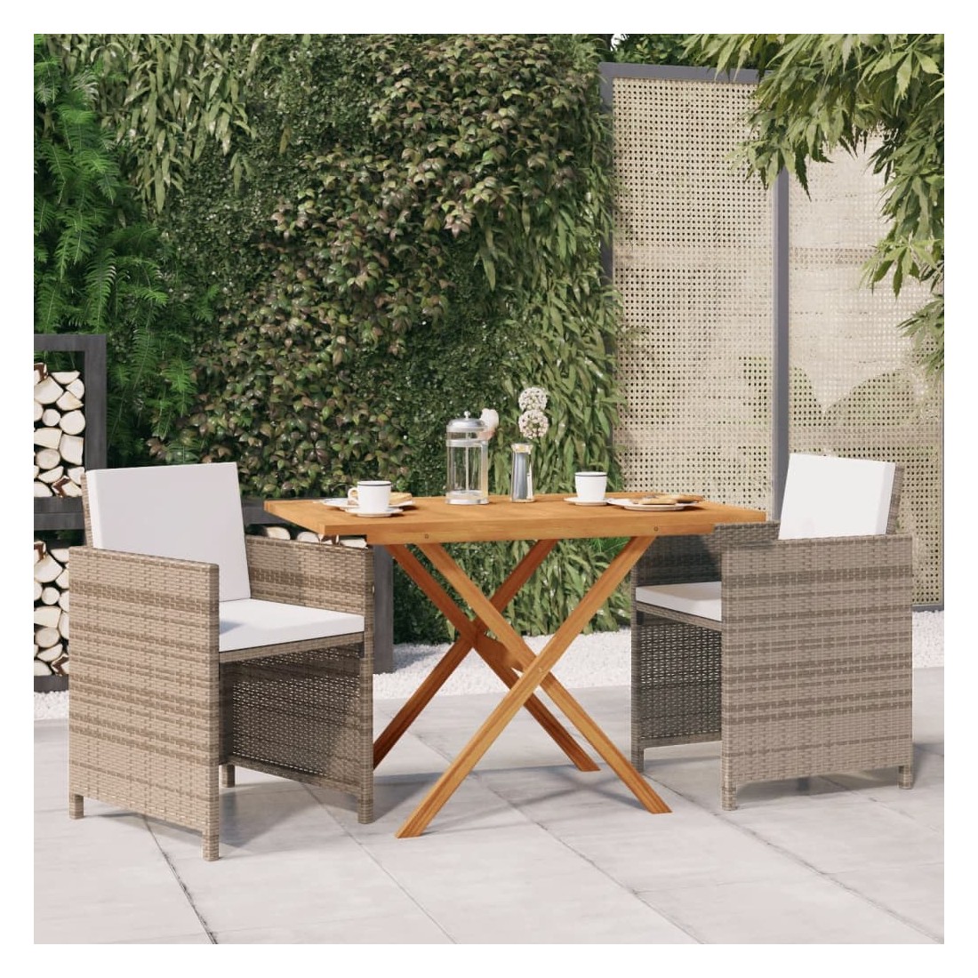 Ensemble à manger de jardin 3 pcs avec coussins Beige