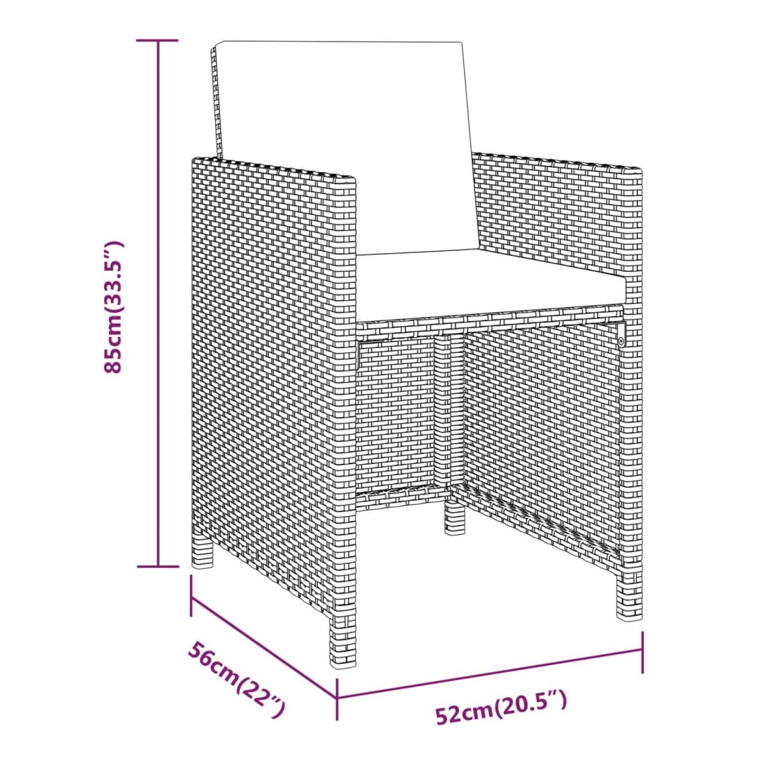 • Dimensions de la chaise : 52 x 56 x 85 cm (l x P x H)