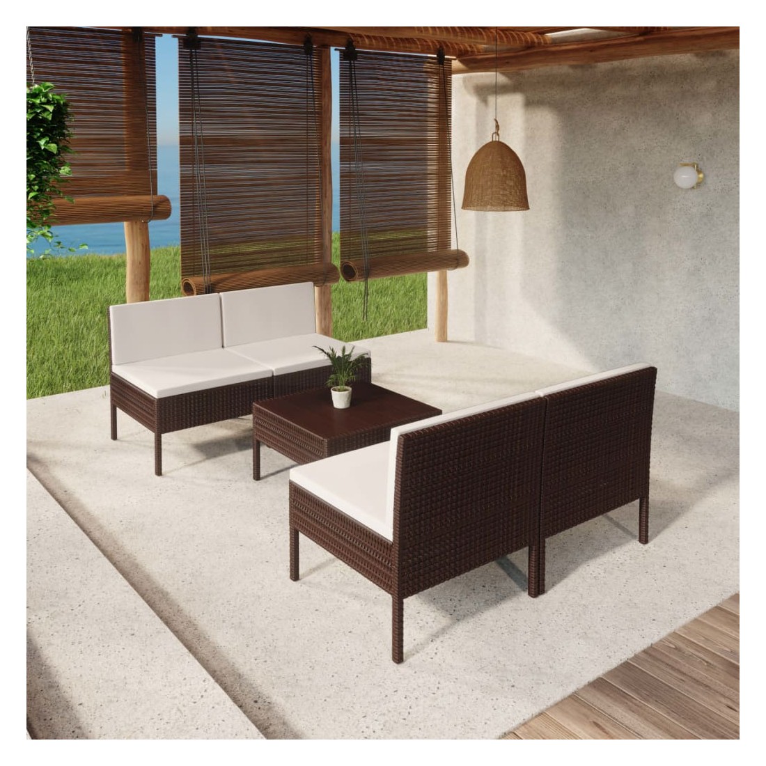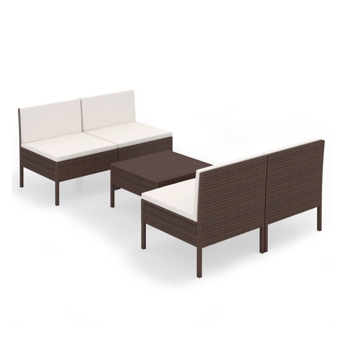 Salon de jardin 5 pcs avec coussins résine tressée marron