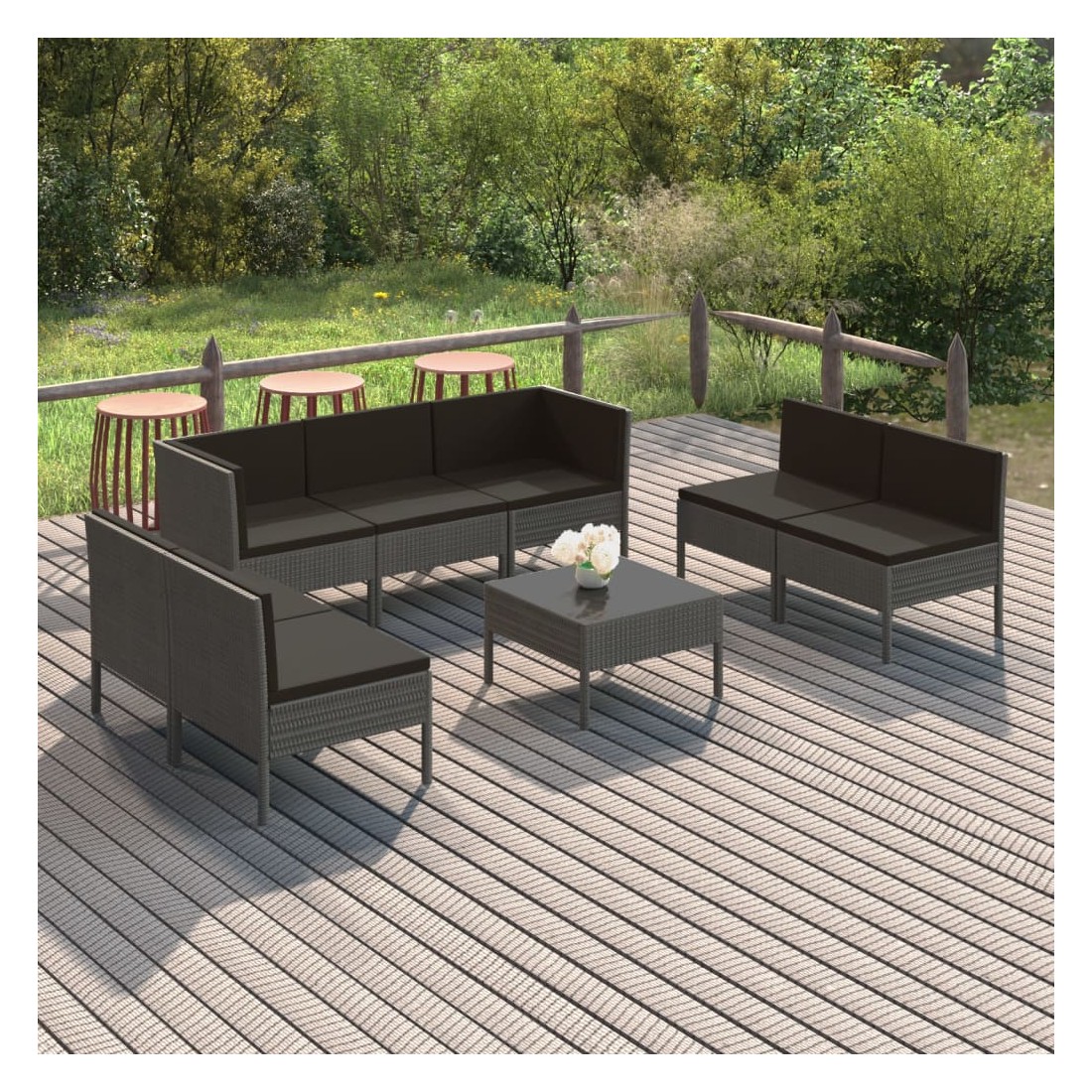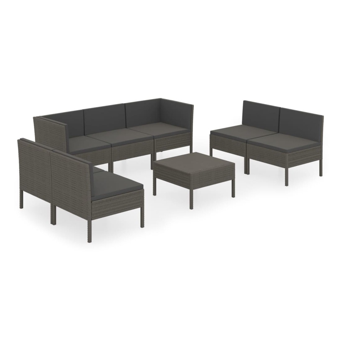 Salon de jardin 8 pcs avec coussins résine tressée gris