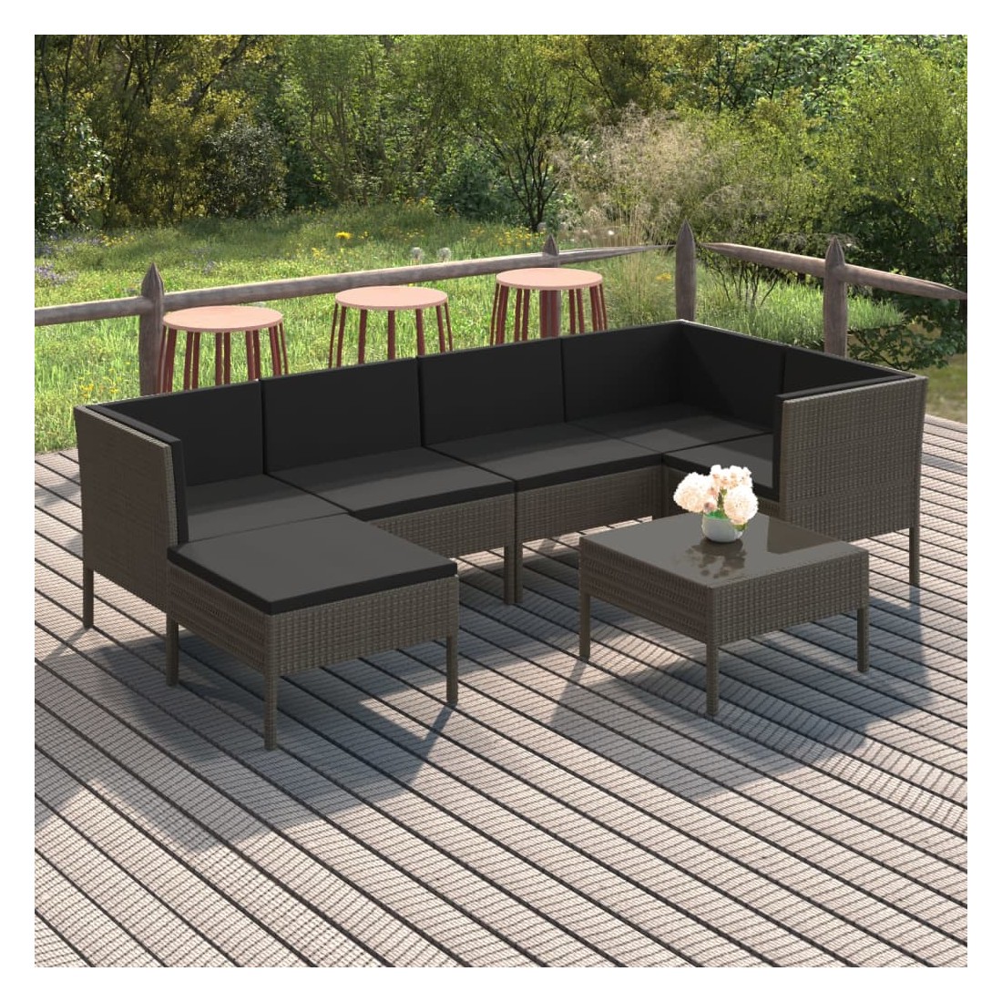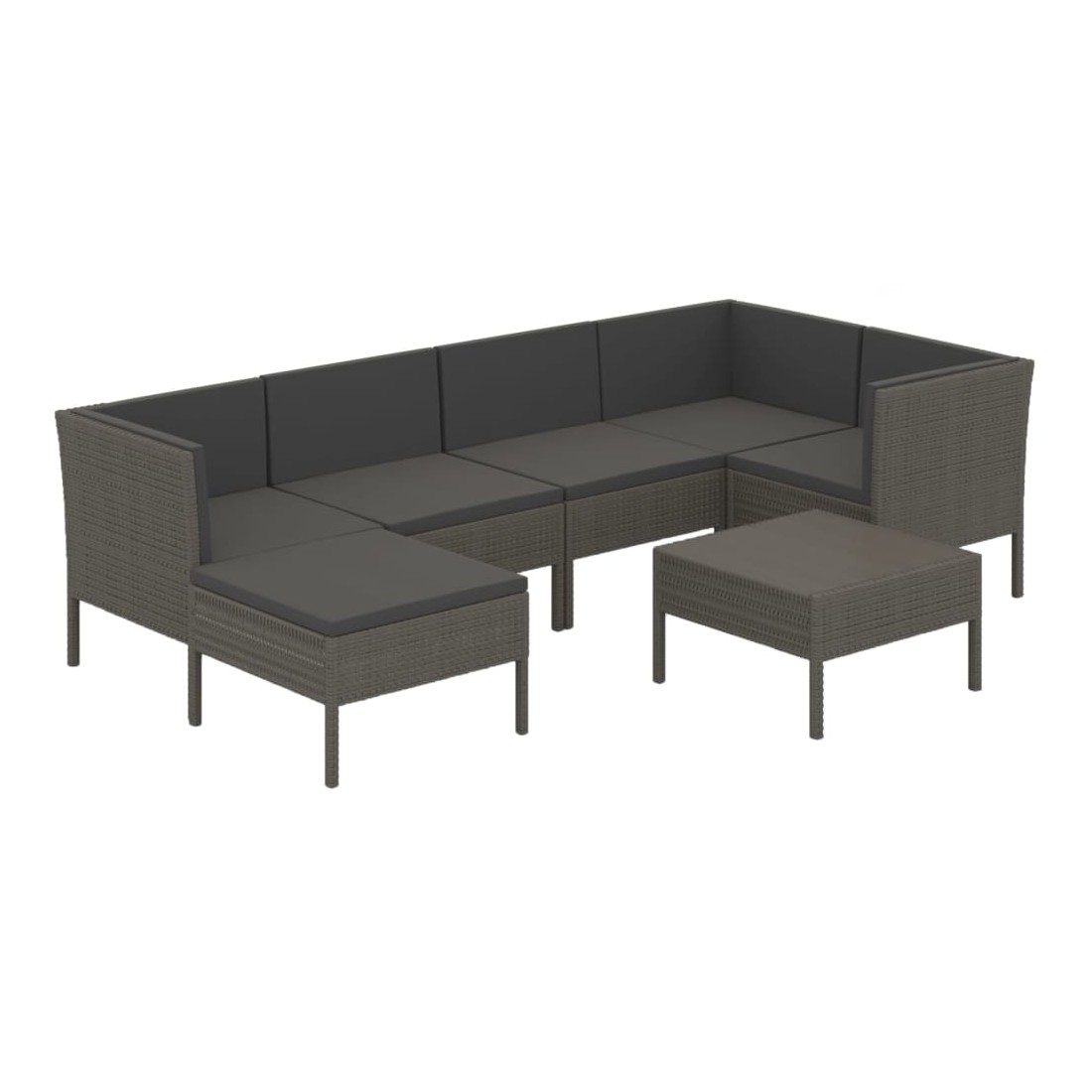 Salon de jardin 7 pcs avec coussins résine tressée gris