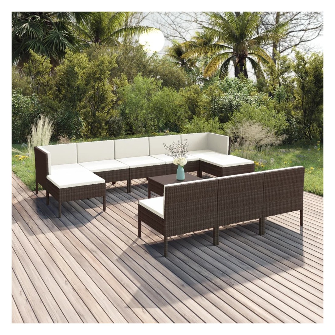 Salon de jardin 11 pcs avec coussins Résine tressée Marron