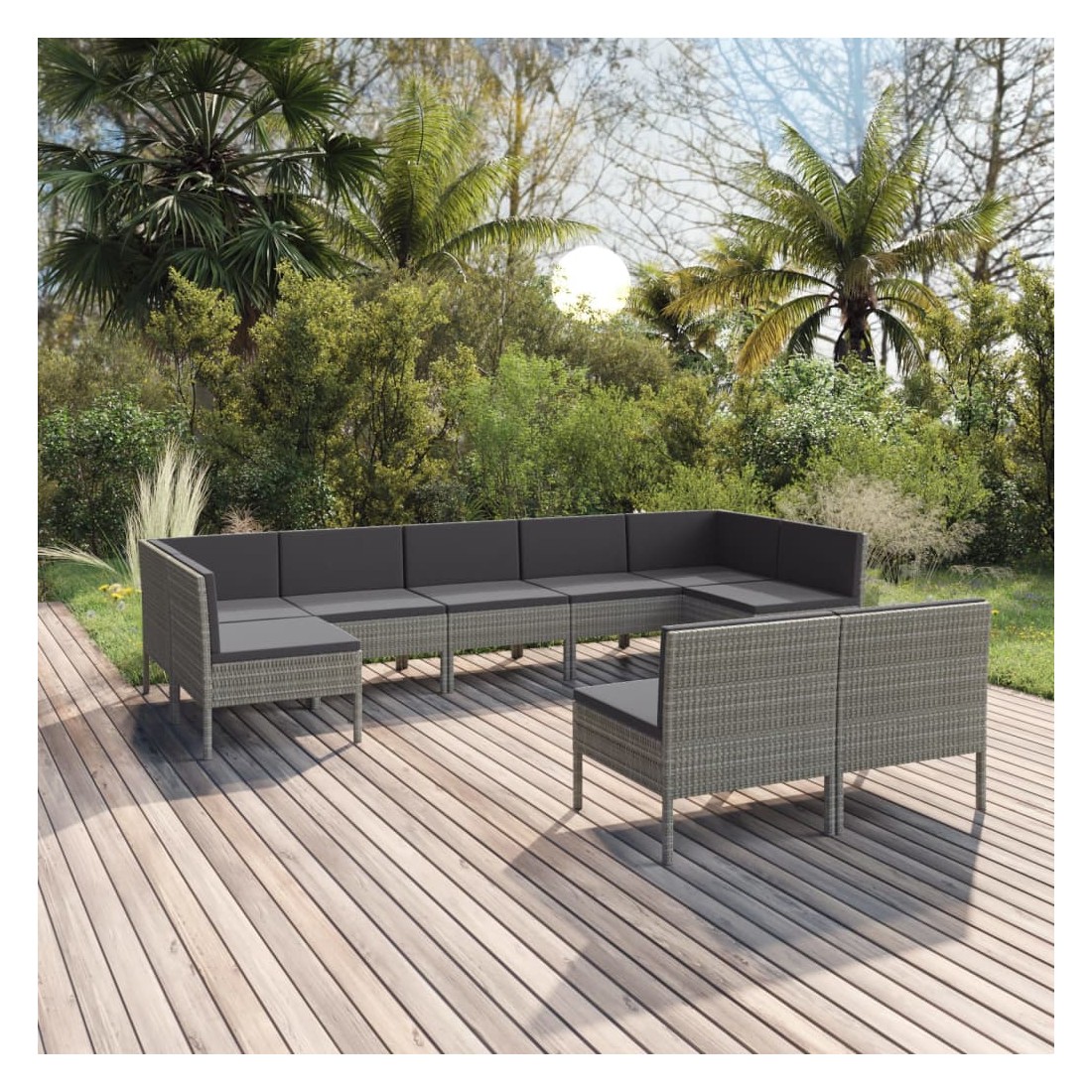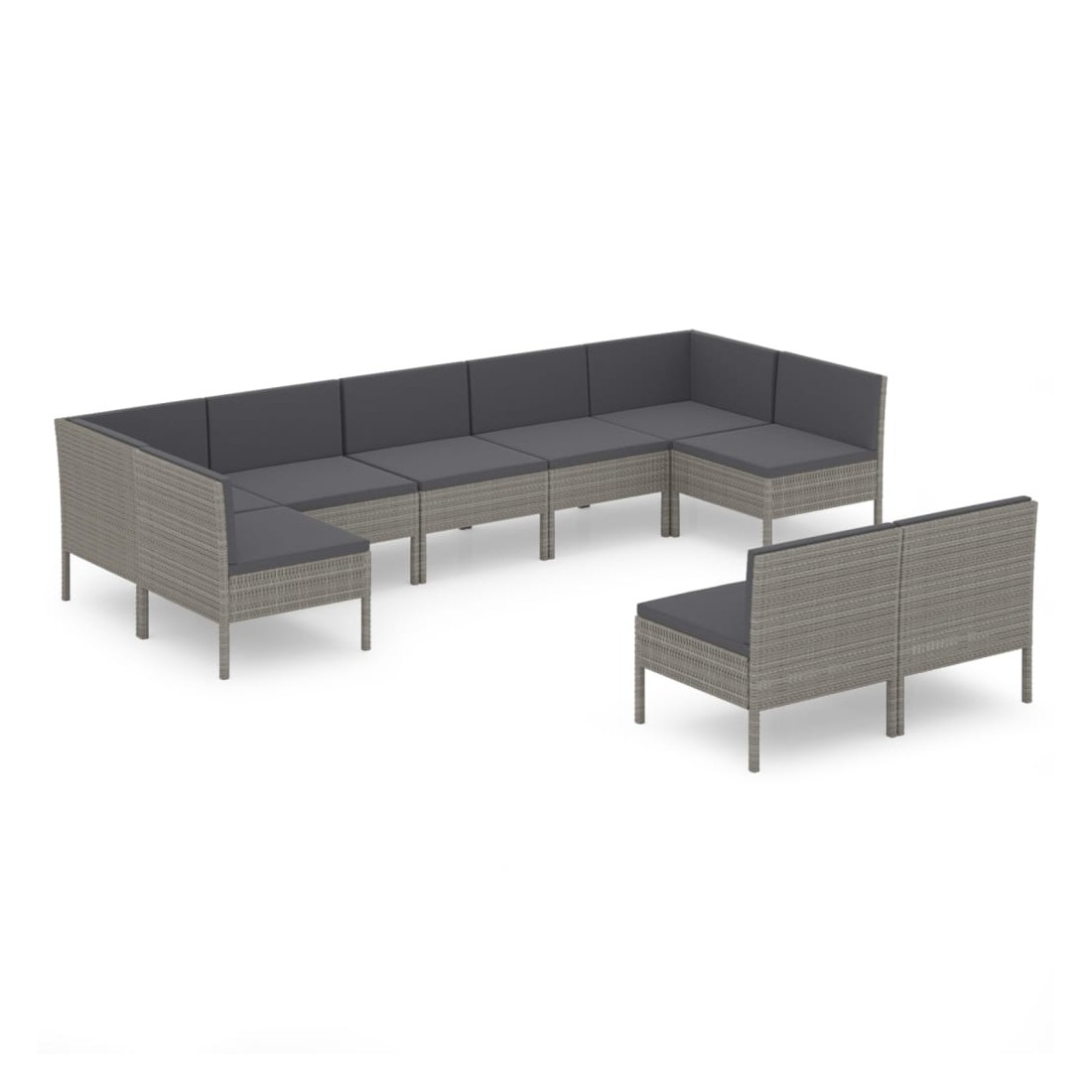 Salon de jardin 9 pcs avec coussins Résine tressée Gris