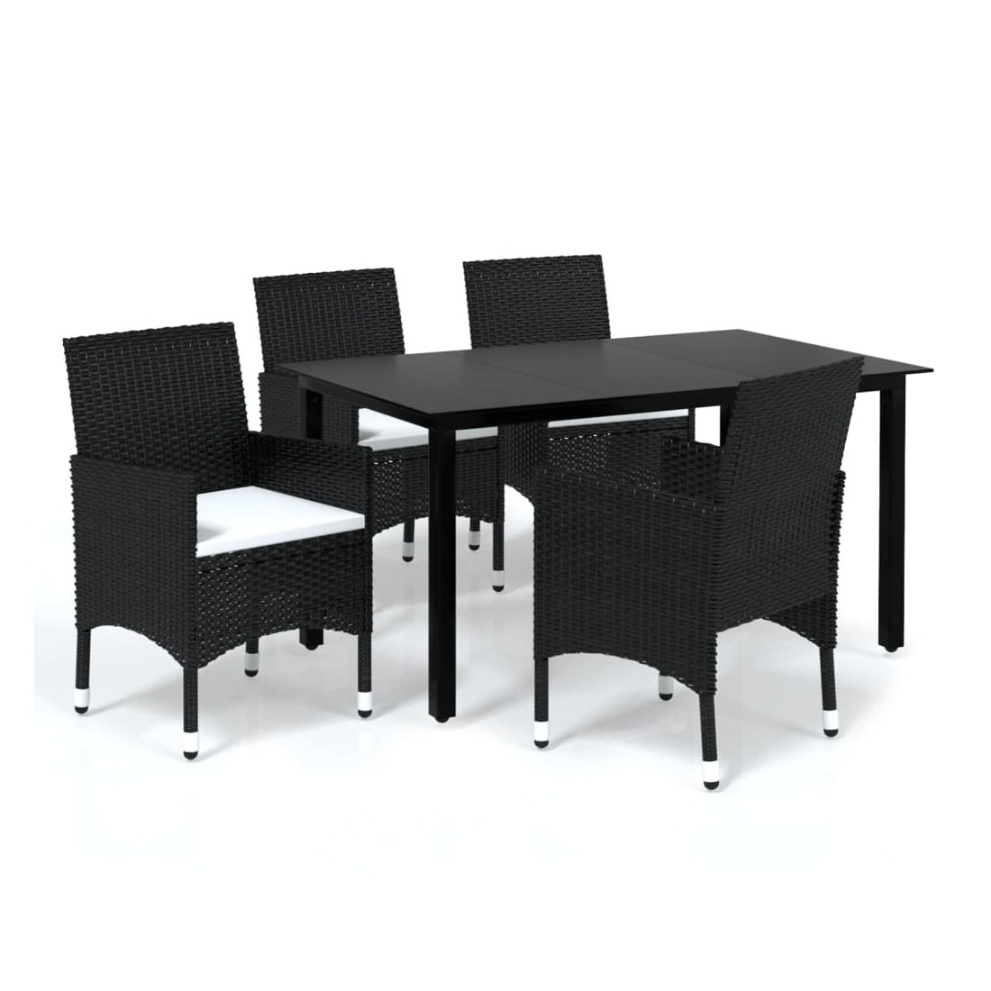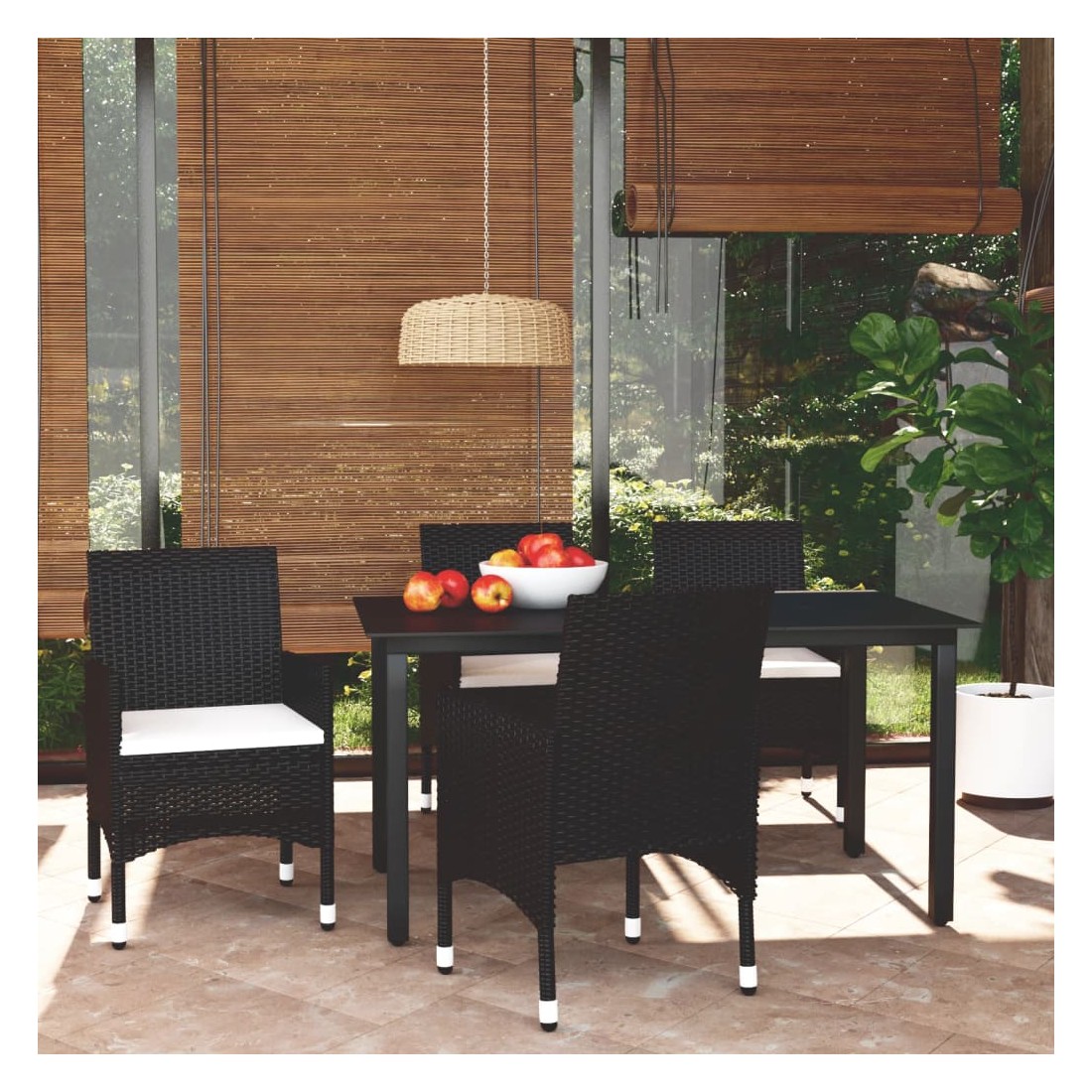Ensemble à dîner de jardin avec coussins 5 pcs poly rotin noir